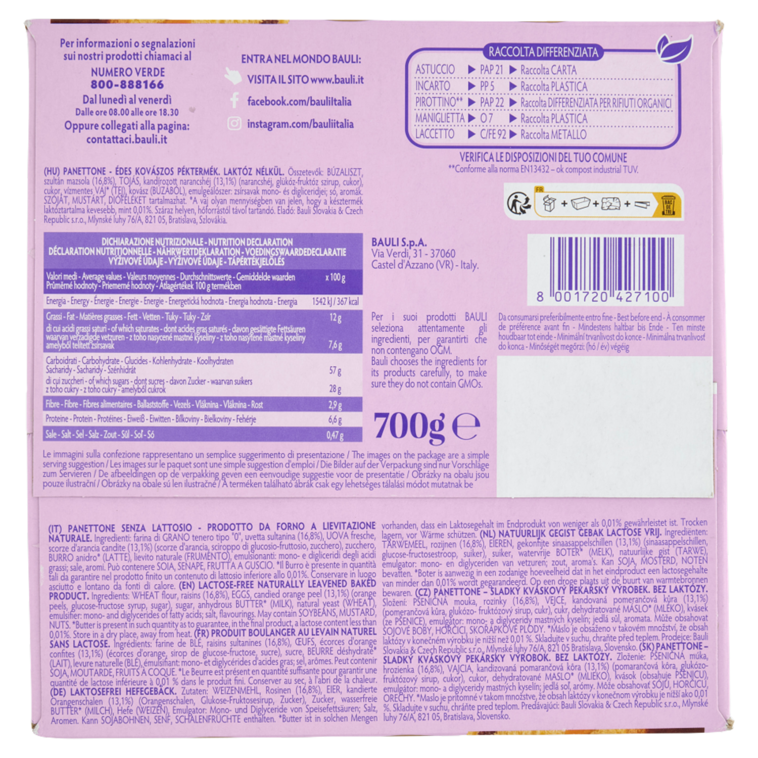 Bauli il Panettone Senza Lattosio Classico 700 g