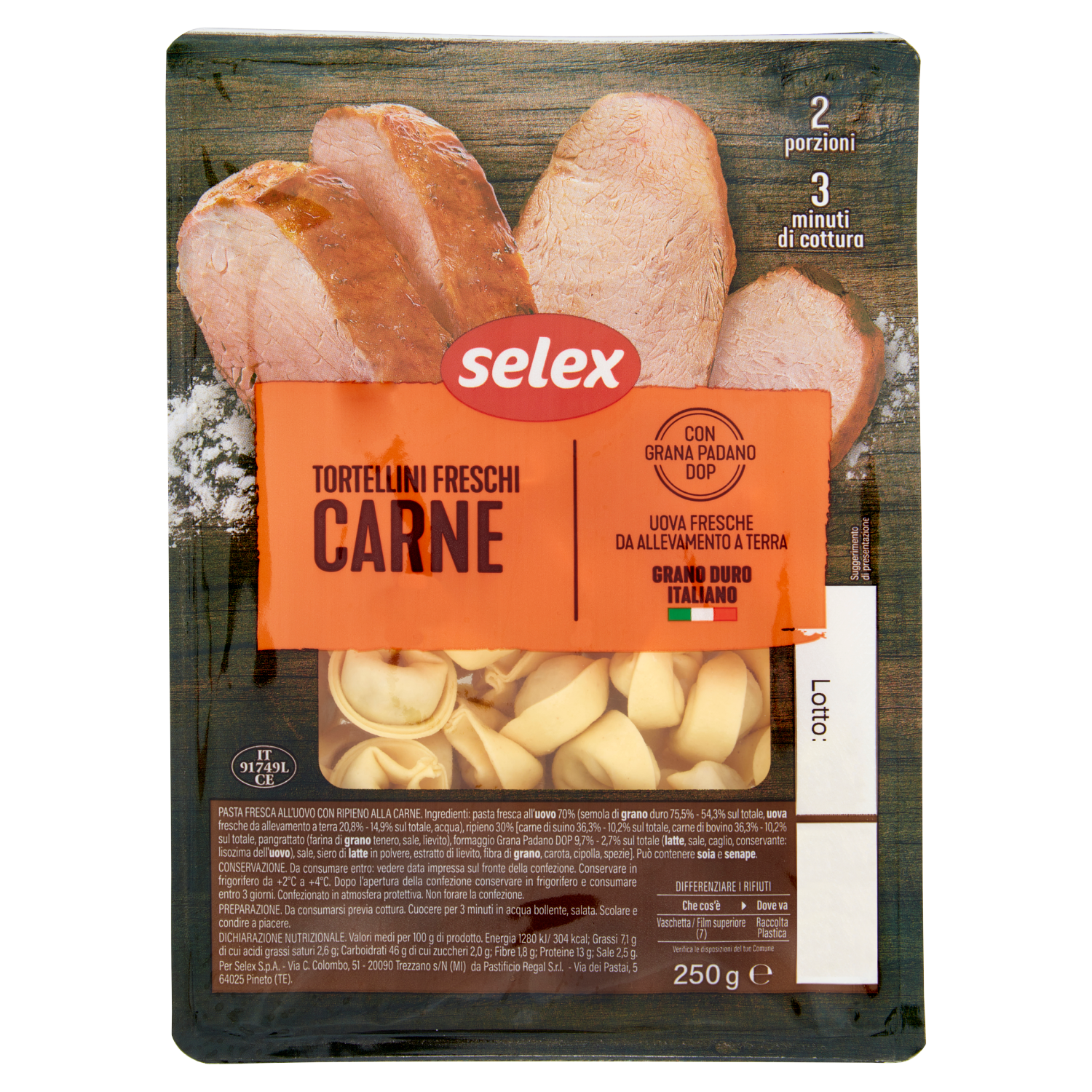 Selex Tortellini alla Carne con Grana Padano 250 g