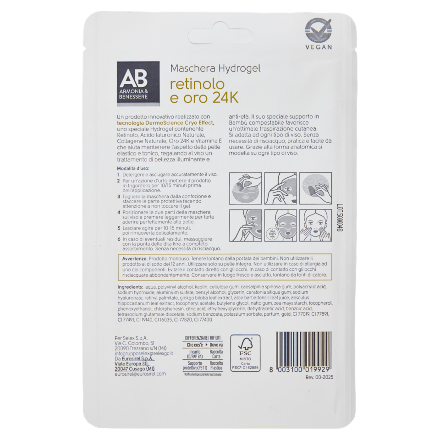 Armonia & Benessere Maschera Viso Hydrogel con Retinolo e Oro 24K