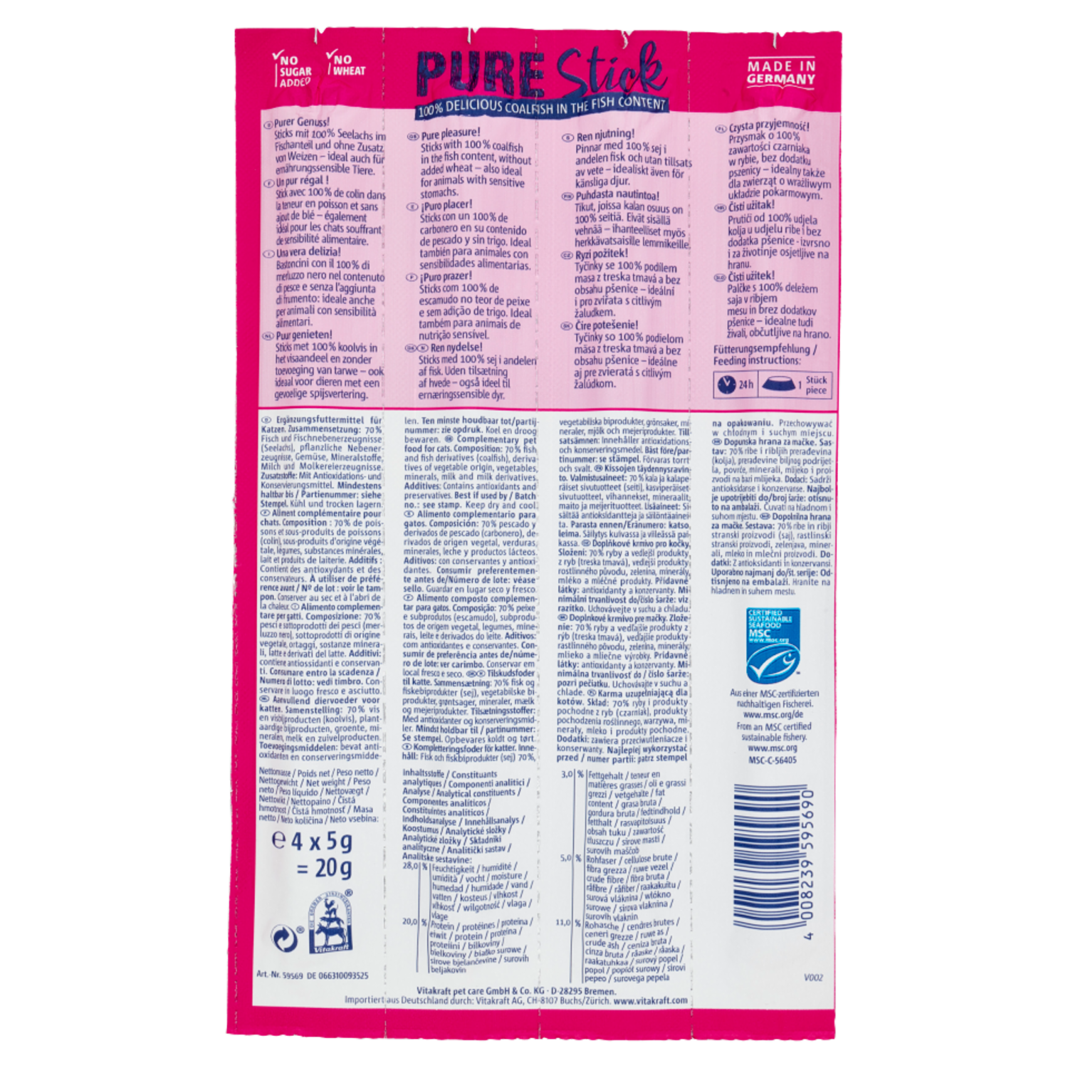 Vitakraft Pure Stick Coalfish 100% 4 x 5 g