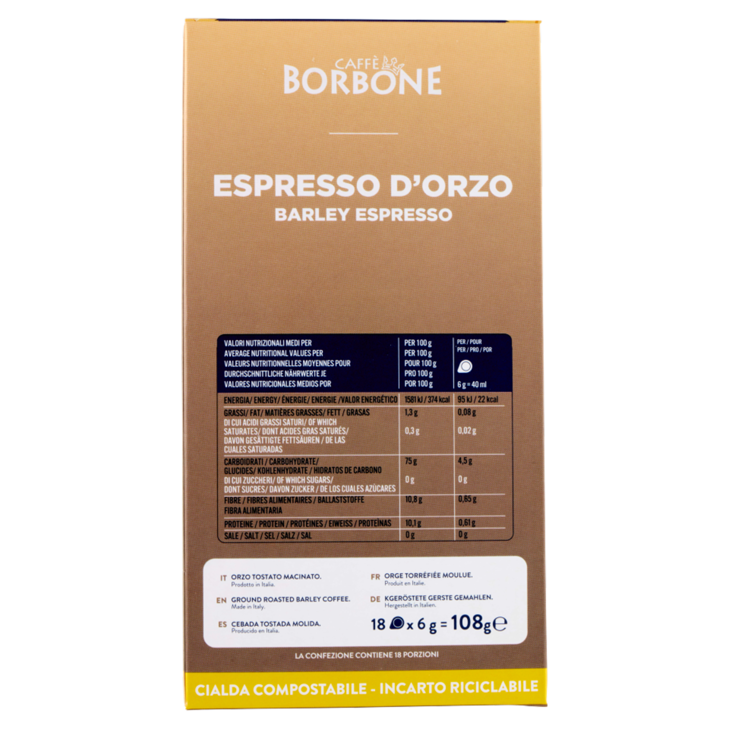 Caffè Borbone Espresso d'Orzo Cialda Compostabile 18 x 6 g