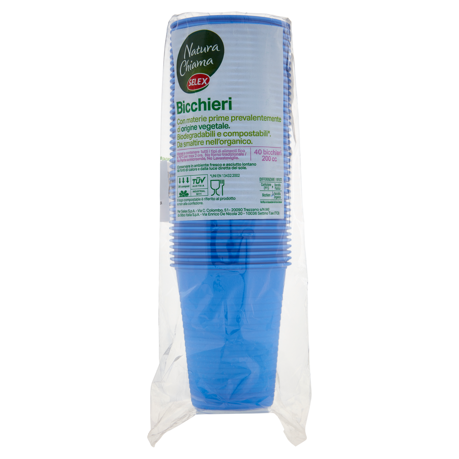 Selex Natura Chiama Bicchieri Biodegradabili e Compostabili Ecologici Azzurri 200cc 40 pezzi
