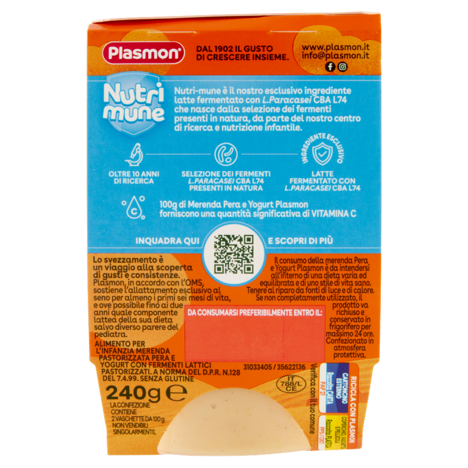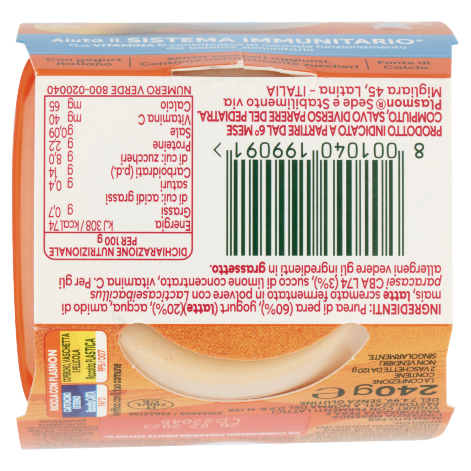 Plasmon la Merenda Pera e Yogurt Nutri mune 2 x 120 g