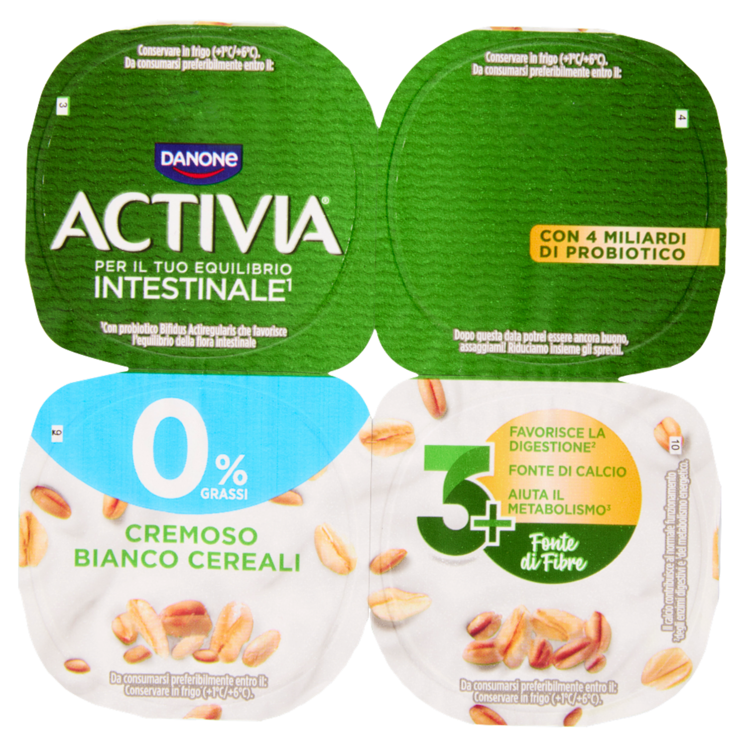 ACTIVIA Fibre, Yogurt con Probiotico Bifidus, 0% Grassi, Bianco Cereali, 4x125g