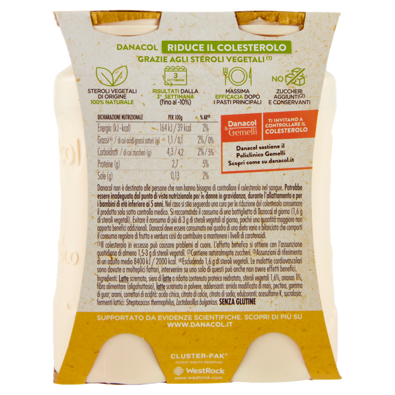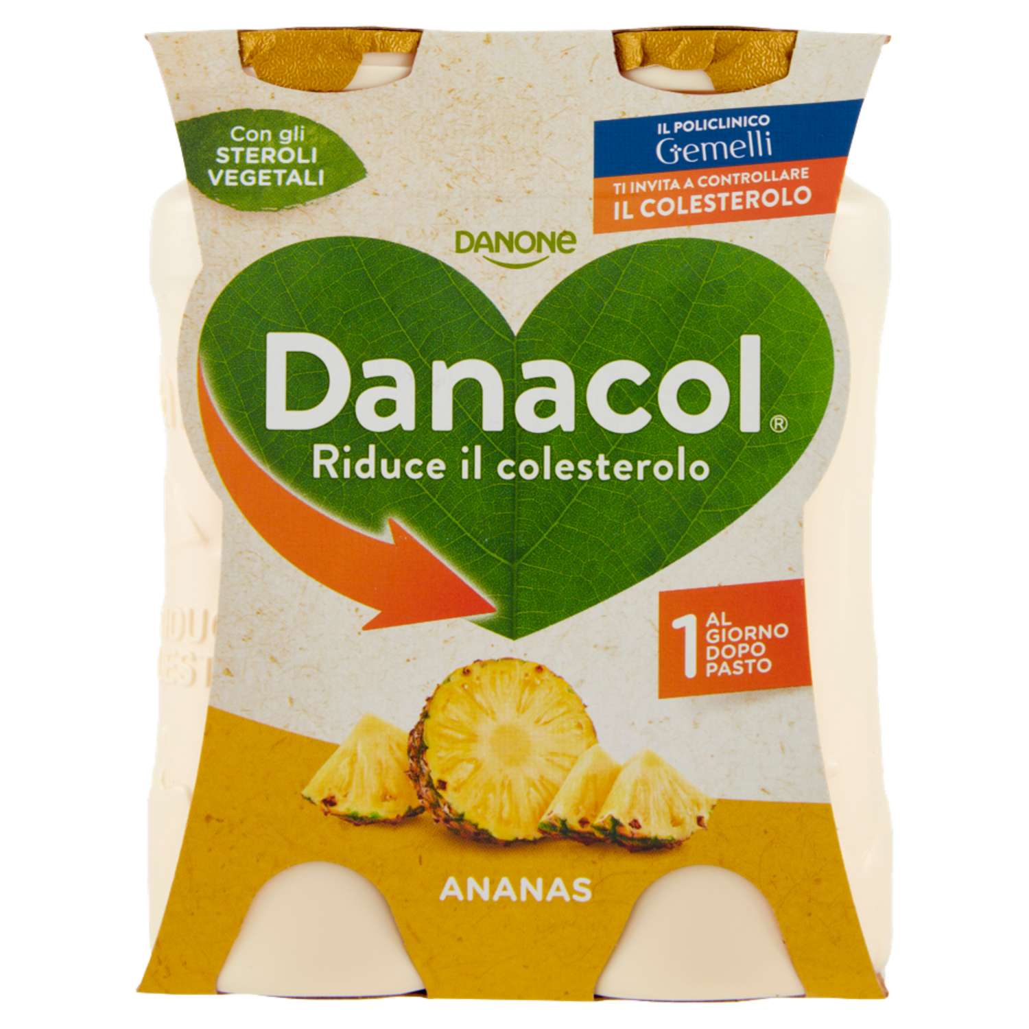 DANACOL Yogurt da bere, Riduce il Colesterolo grazie agli Steroli Vegetali, gusto Ananas, 4x100g