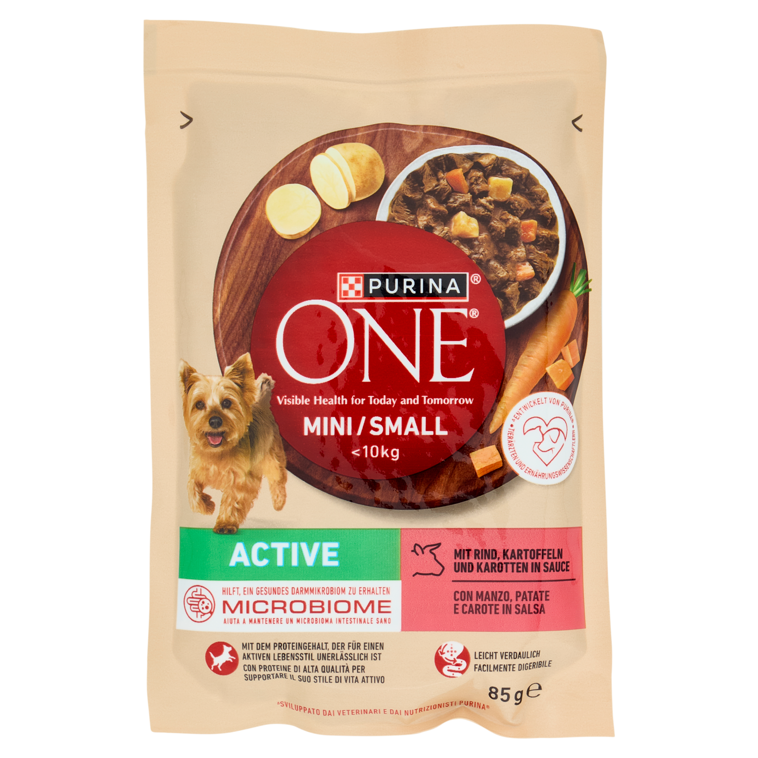 PURINA ONE Mini/Small Active con Manzo, Patate e Carote in Salsa 85 g