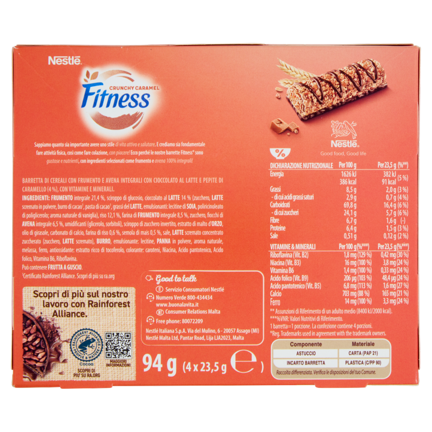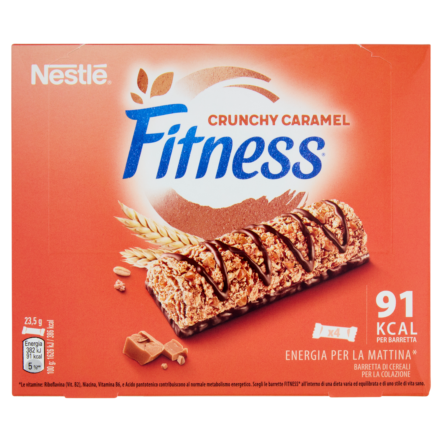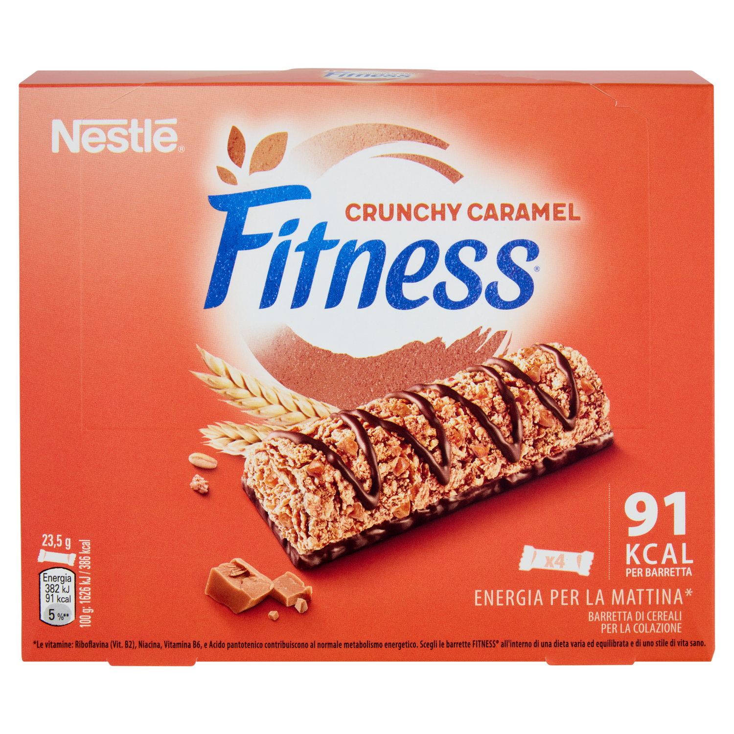FITNESS Crunchy Caramel Barrette Cereali Integrali con Cioccolato e Caramello 4 pezzi da 23,5g