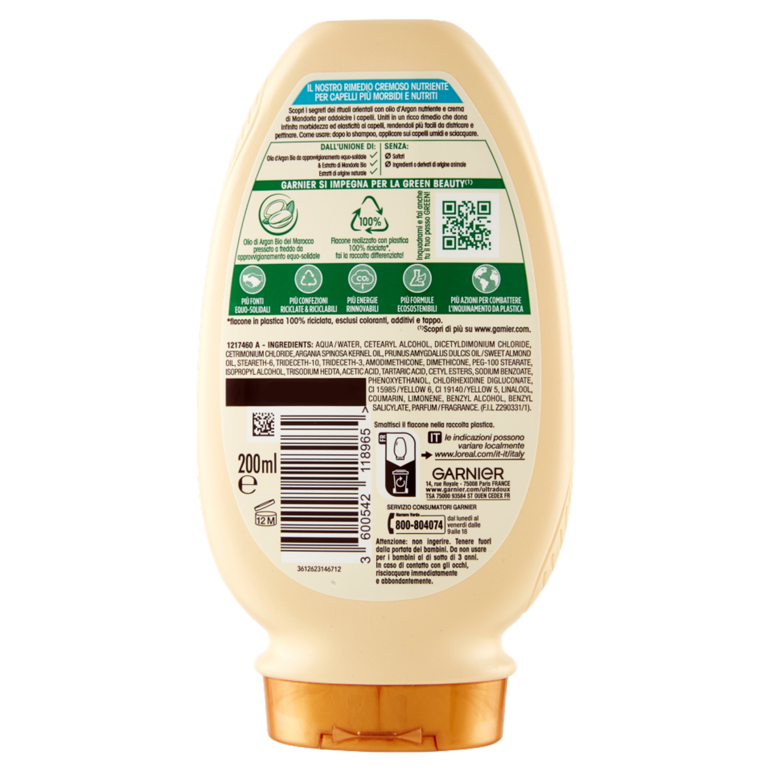 Garnier Ultra Dolce Balsamo capelli crema di Mandorla e Olio d'argan per capelli molto secchi, 200ml