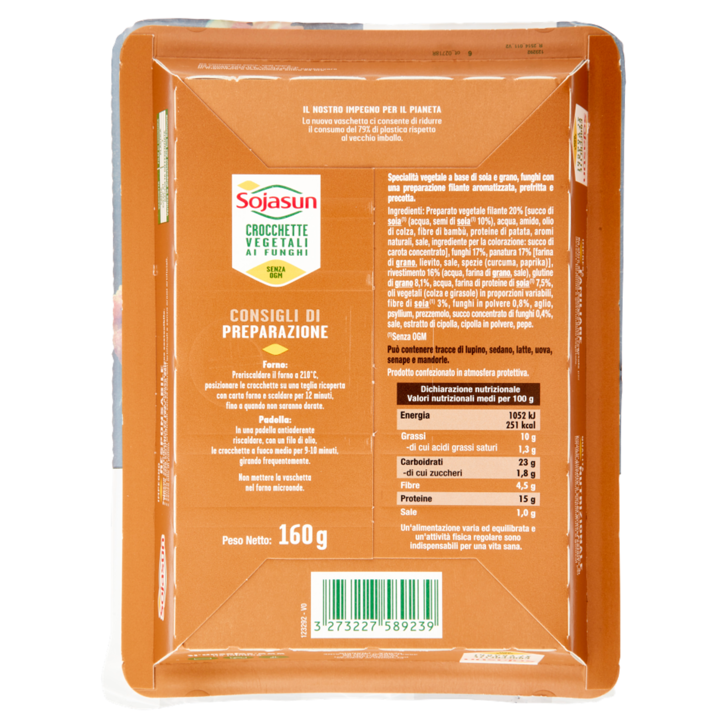 Il nostro impegno per il pianeta La nuova vaschetta ci consente di ridurre il consumo del 79% di plastica rispetto al vecchio imballo. Un'alimentazione varia ed equilibrata e un'attività fisica regolare sono indispensabili per una vita sana.
