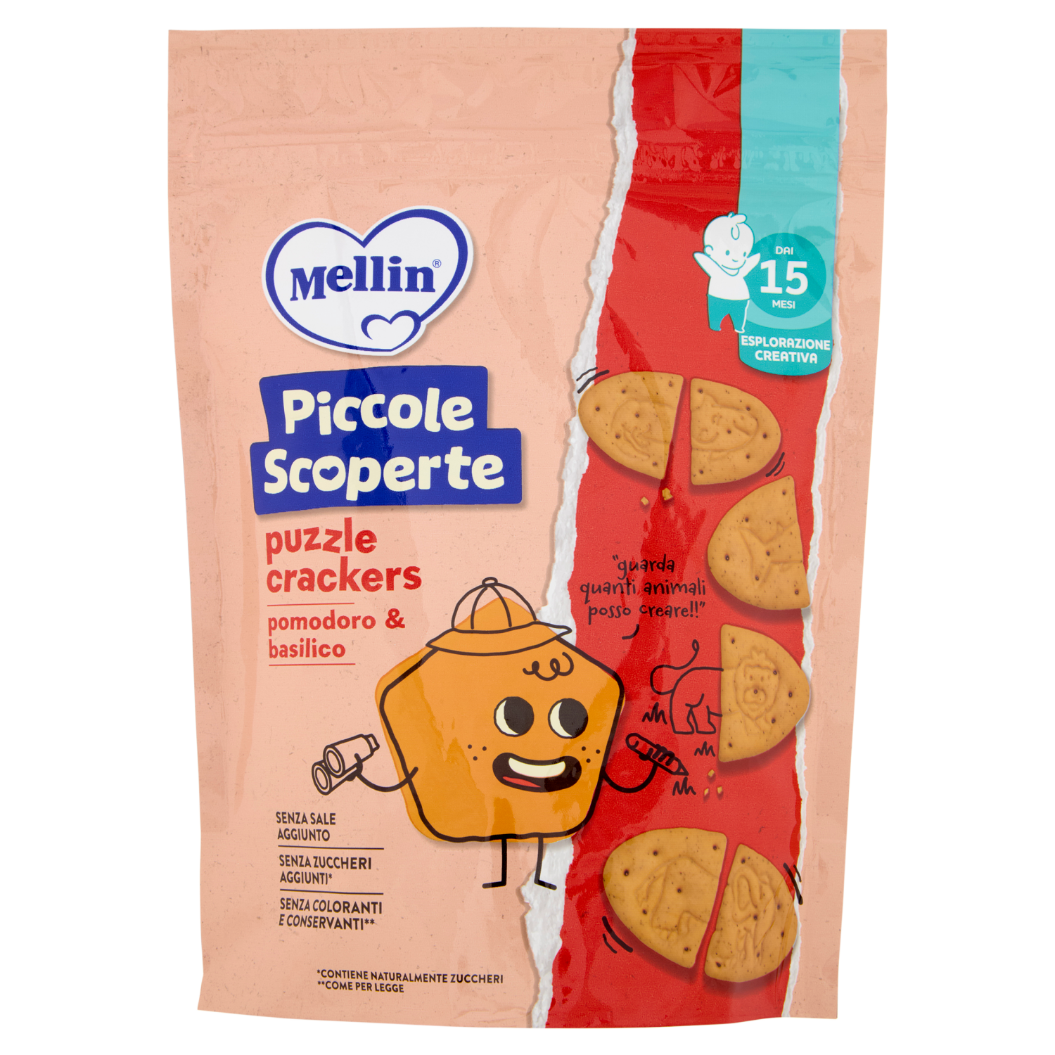 MELLIN Puzzle Crackers, Pomodoro e Basilico, Senza Sale e Zuccheri, adatto dai 15 mesi, 105g