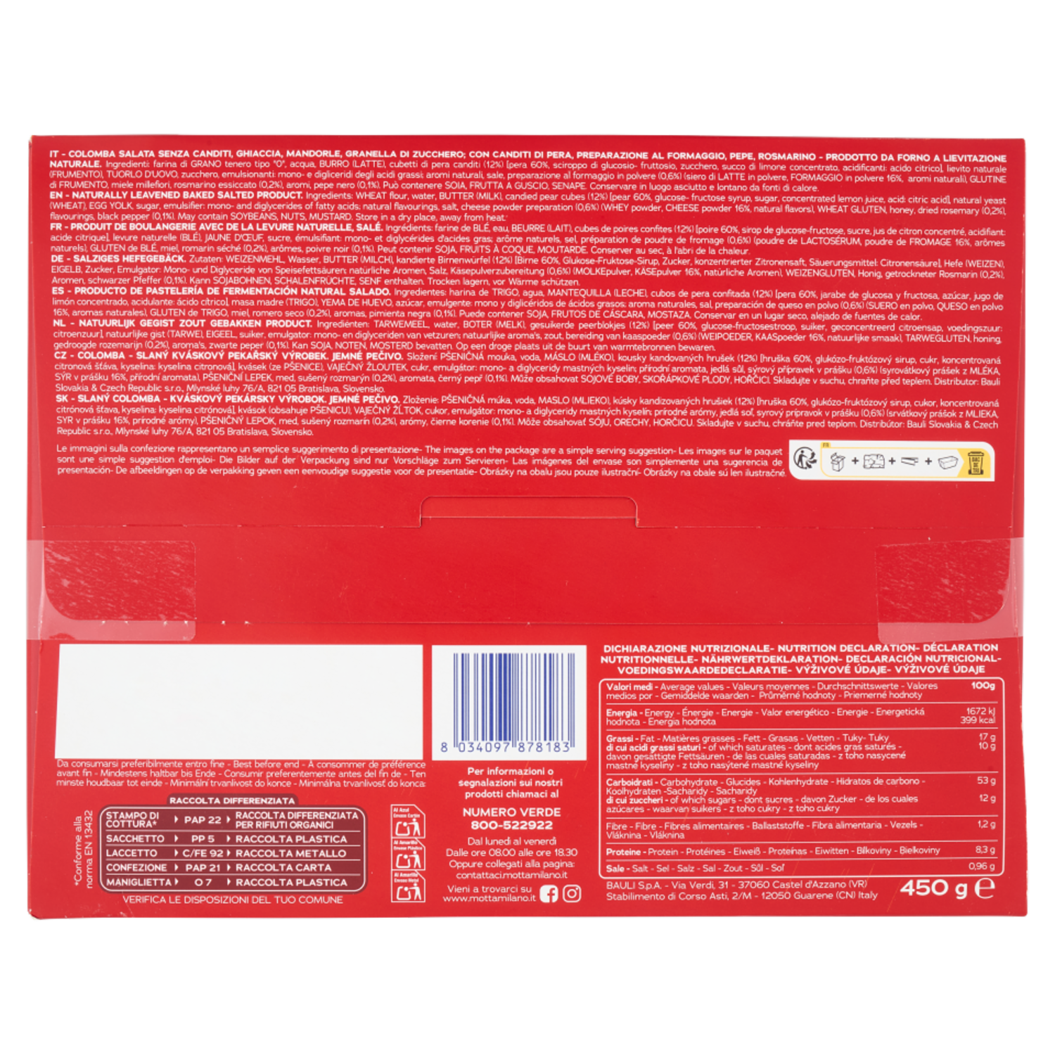 Motta la Colomba Salata Formaggio e Pere 450 g