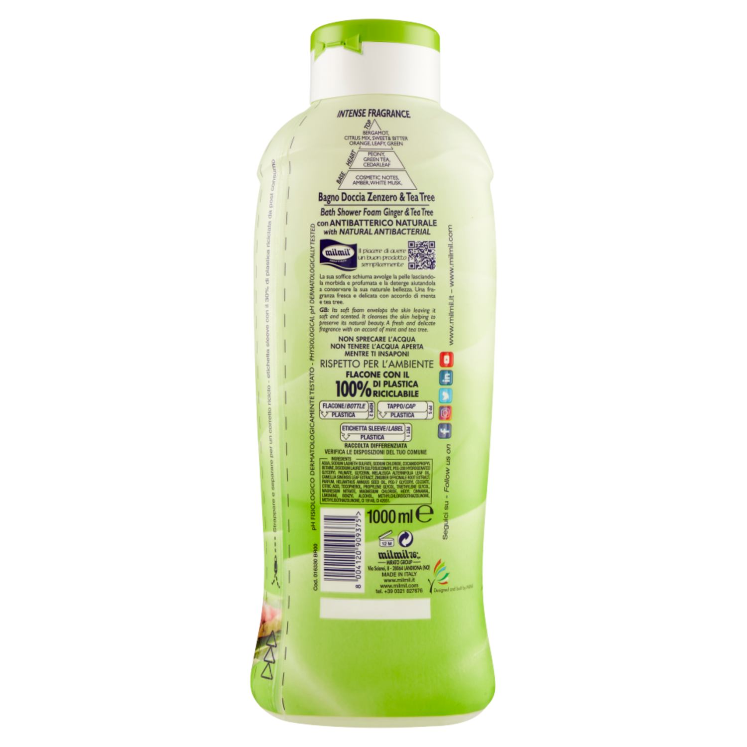 milmil Bagno Doccia Igienizzante con Antibatterico Naturale zenzero & tea tree 1000 ml