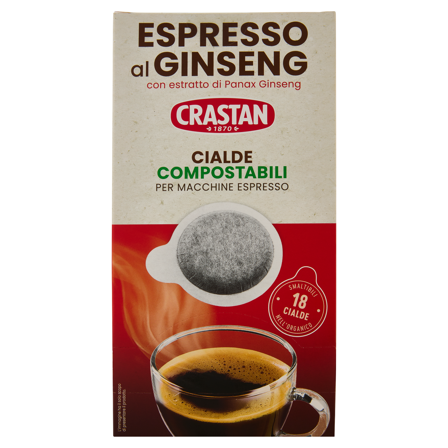 Crastan Espresso al Ginseng Cialde Compostabili per Macchine Espresso 18 x 7 g