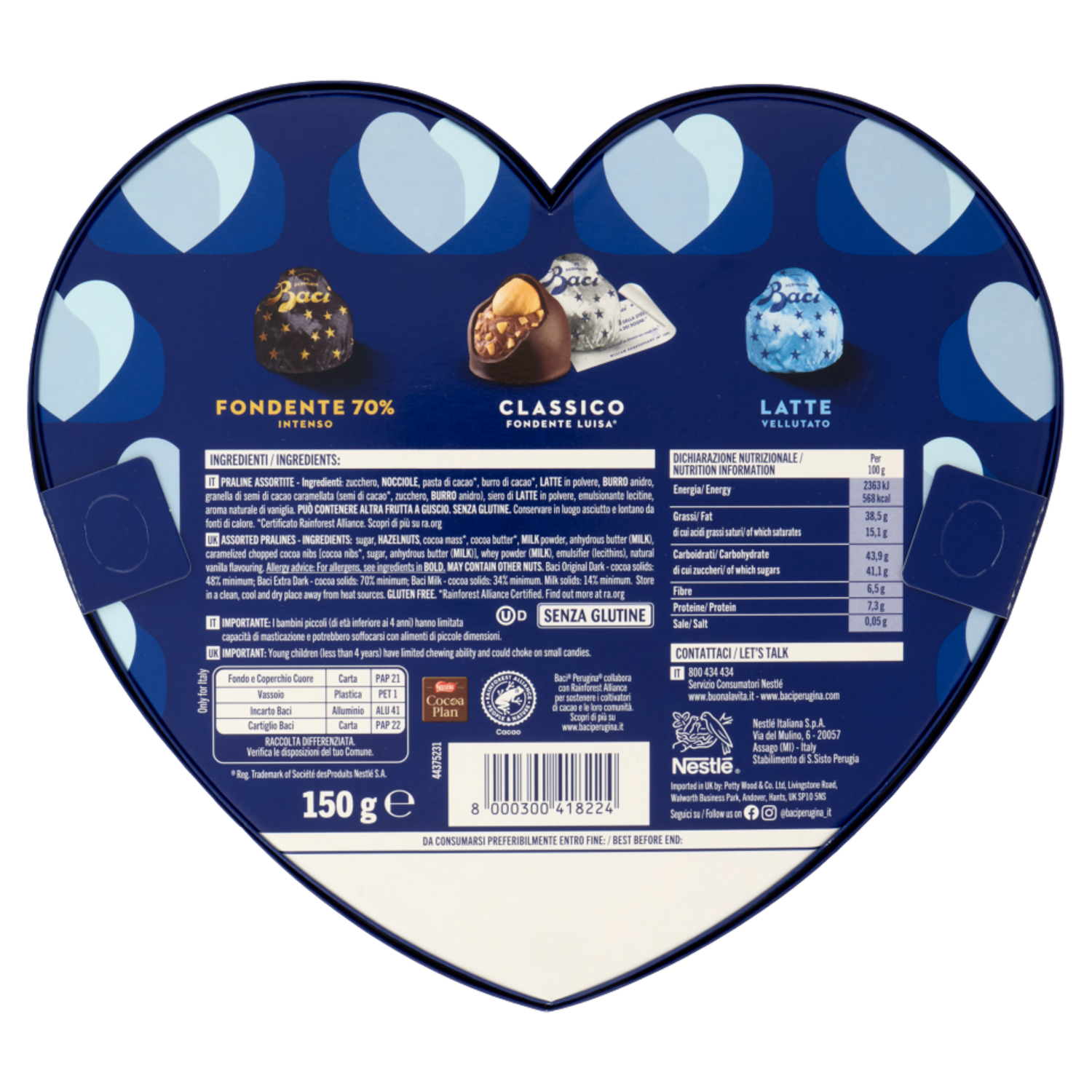 BACI PERUGINA Cioccolatini Assortiti ripieni al Gianduia Scatola Maxi Cuore San Valentino 150g