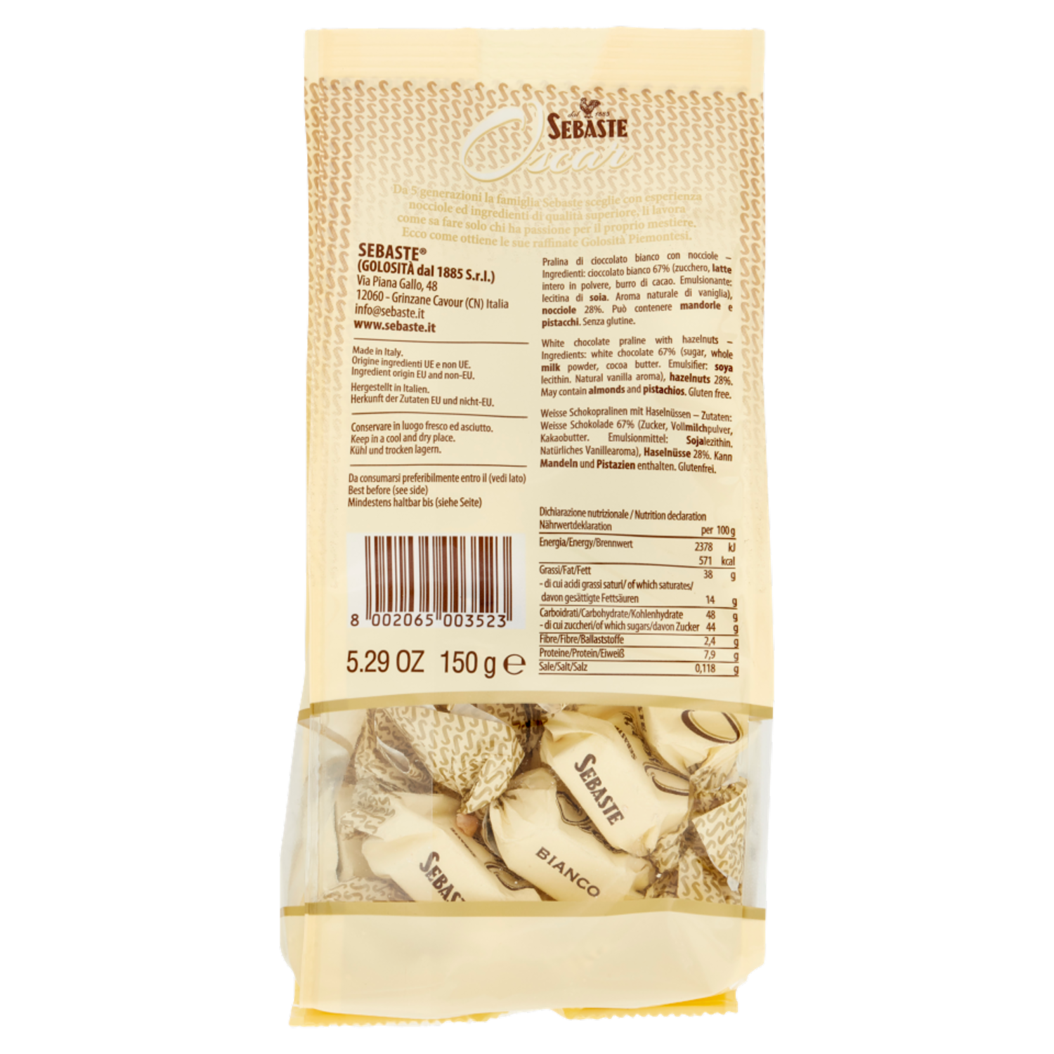 Sebaste Oscar Cioccolatino Bianco con Nocciole 150 g