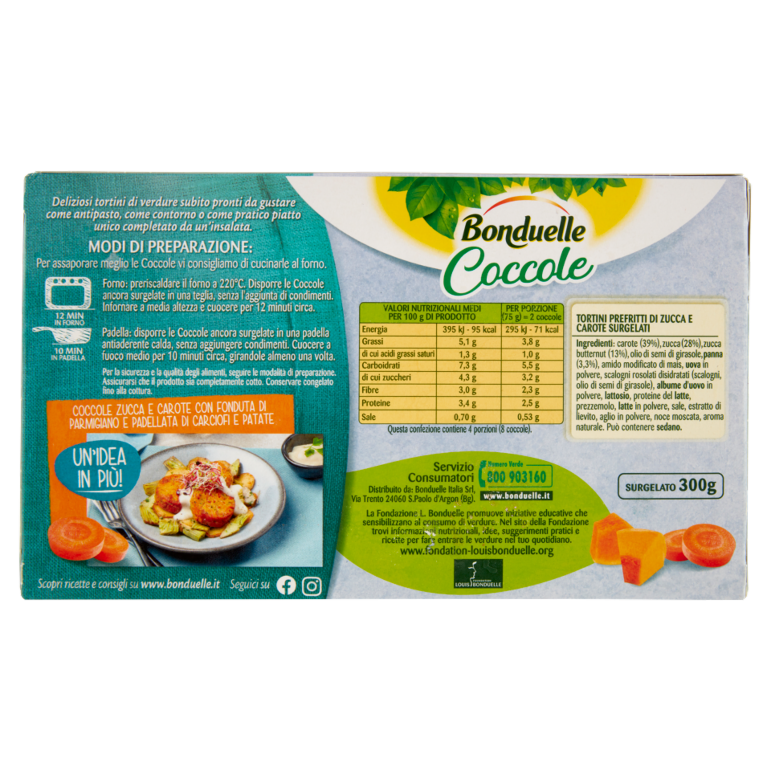 Coccole zucca e carote con fonduta di parmigiano e padellata di carciofi e patate Un'idea in più! Scopri ricette e consigli su www.bonduelle.it Seguici su Facebook, Instagram