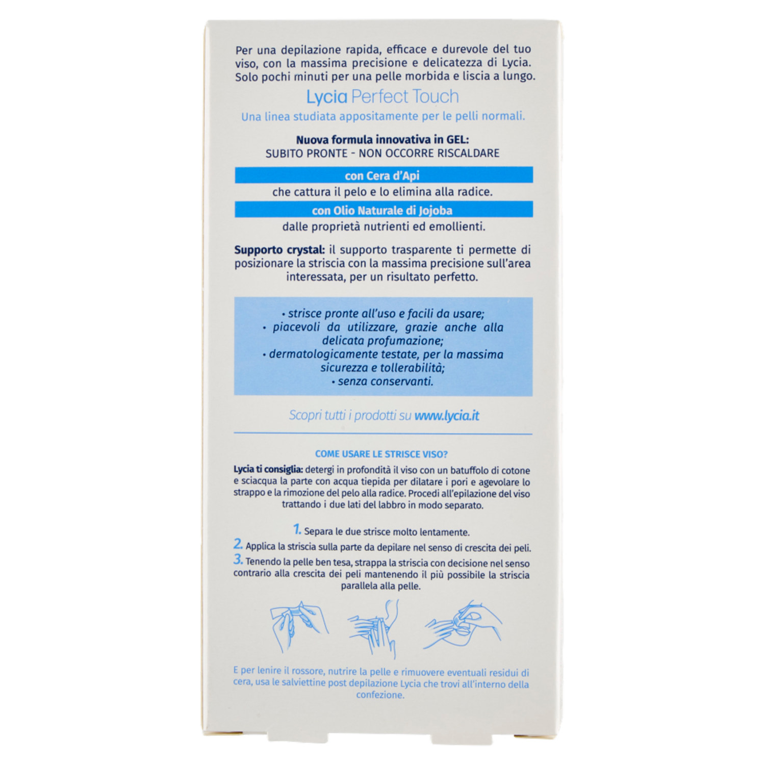 Lycia perfect touch strisce depilatorie Viso Pelli Normali 20 strisce + 4 salviettine