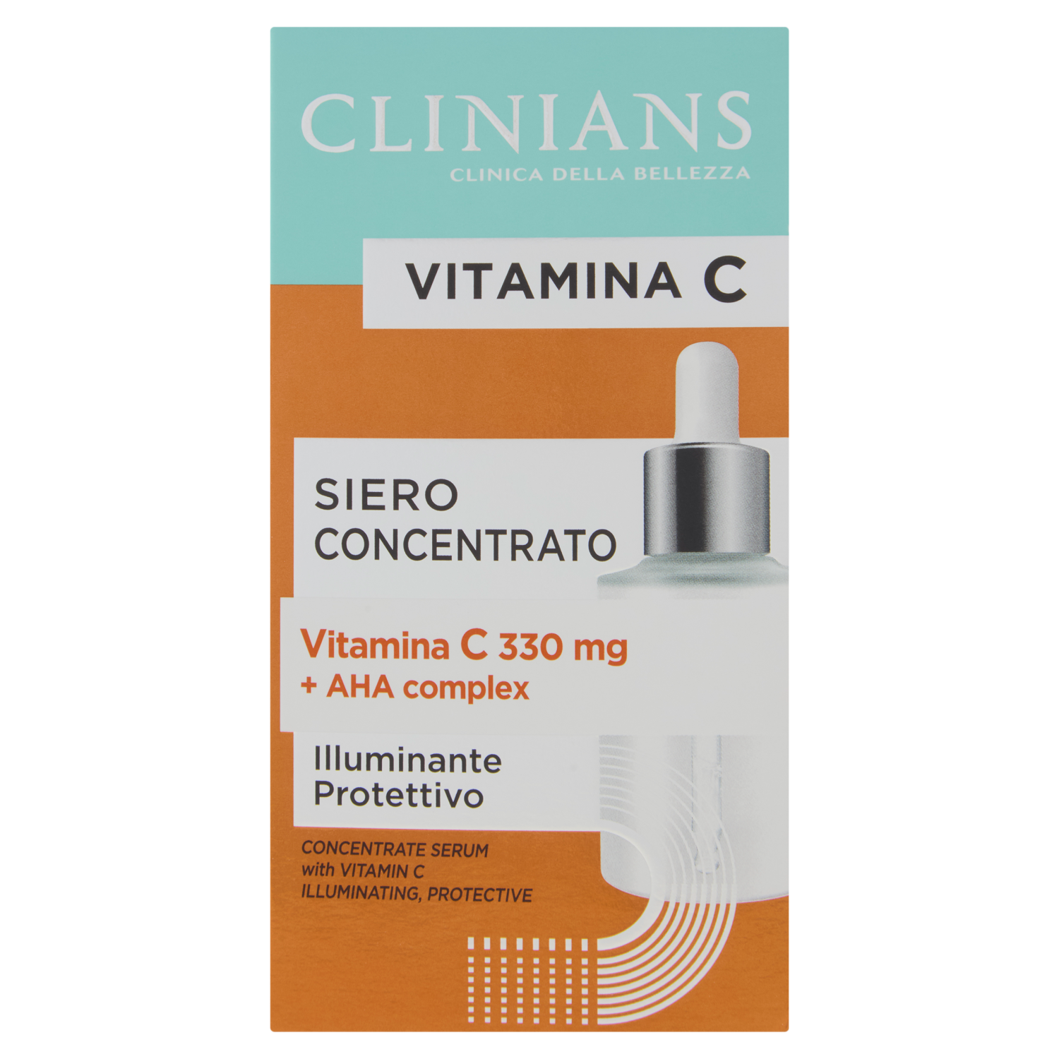 Clinians Vitamina C Siero Concentrato è il trattamento intensivo che svolge un'azione illuminante, protettiva ed idratante. Contiene un'elevata percentuale di Vitamina C, attivo con proprietà antiossidanti in grado di ravvivare la naturale luminosità della pelle. Ogni flacone contiene 330 mg di Vitamina C (Sodium Ascorbyl Phosphate), sostanza preziosa e fondamentale che aiuta a combattere la comparsa dei segni dell'invecchiamento cutaneo e contrastare la perdita di luminosità della pelle. Particolarmente indicato per le pelli opache, affaticate e dal colorito spento a causa dell'inquinamento atmosferico, stanchezza e jet lag. Azioni: - Illumina la pelle, ravviva il colorito e aumenta la naturale radiosità della cute. - Svolge un'intensa attività antiossidante proteggendo la pelle dalle azioni dannose dei radicali liberi. - Garantisce idratazione per tutta la giornata. Texture: leggera e setosa, di rapido assorbimento, si fonde sulla pelle risultando impalpabile. Risultati: fin dalle prime applicazioni, la pelle appare estremamente luminosa, idratata, liscia e morbida. Con un uso continuativo l'incarnato diventa più uniforme e radioso ed il viso appare più giovane e riposato. Dermatologicamente testato - Uso esterno Ingredienti: - Vitamina C: offre una protezione antiossidante per ravvivare il colorito della pelle. - AHA complex, miscela di alfa idrossiacidi da frutta che svolge una delicata azione esfoliante eliminando le cellule morte dell'epidermide. - Acido Ialuronico dall'intenso potere idratante - Perle ad effetto illuminante istantaneo.