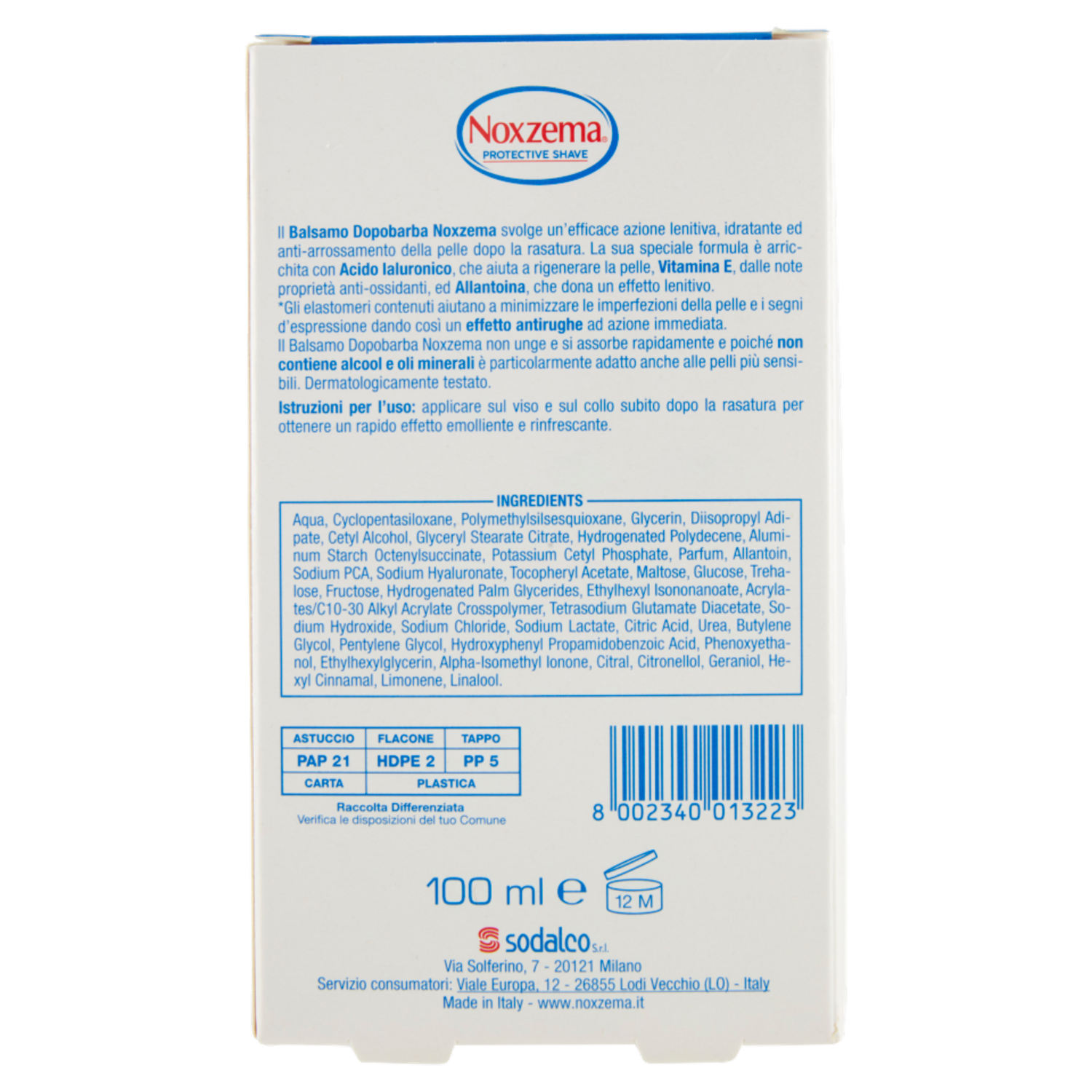 Noxzema Protectice Shave Lenitivo Balsamo Dopobarba Classic 100 ml