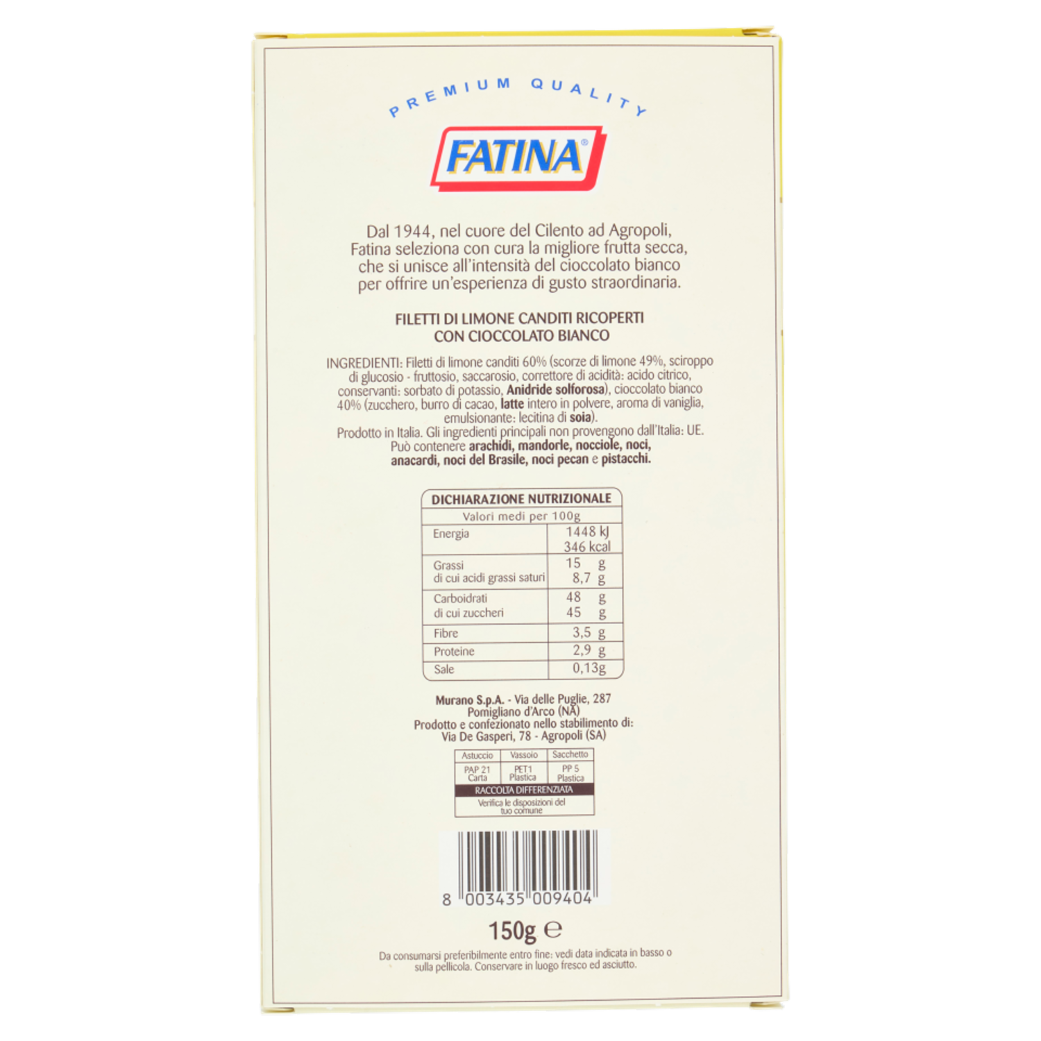 Fatina Filetti di Limone ricoperti con cioccolato bianco 150 g