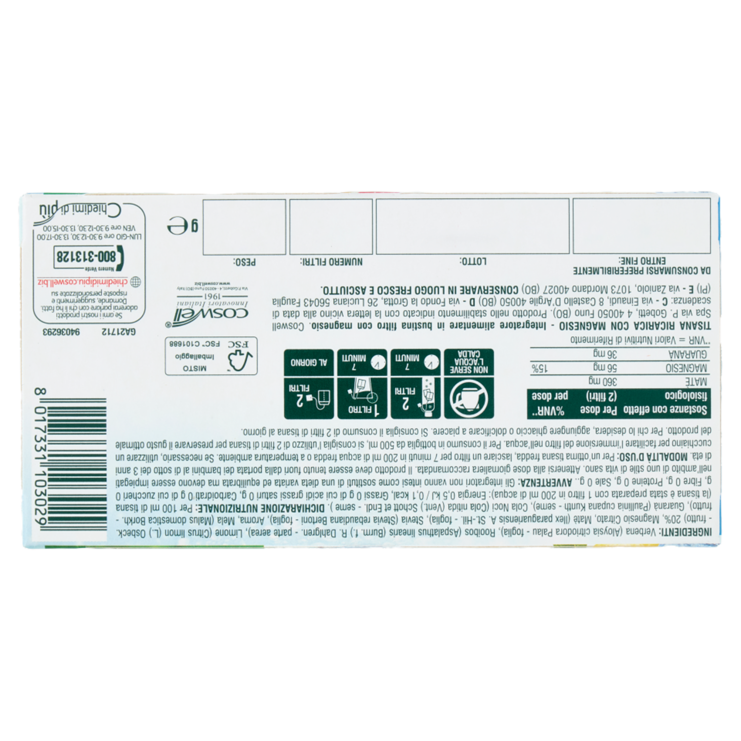coswell Innovatori Italiani 1961 Via P.Gobetti, 4 40050 Funo (BO) Italy Prodotto nello stabilimento indicato con la lettera vicino alla data di scadenza: C - via Einaudi, 8 Castello D'Argile 40050 (BO) D - via Fondo la Grotta, 26 Luciana 56043 Fauglia (PI) E - via Zaniolo, 1073 Mordano 40027 (BO)