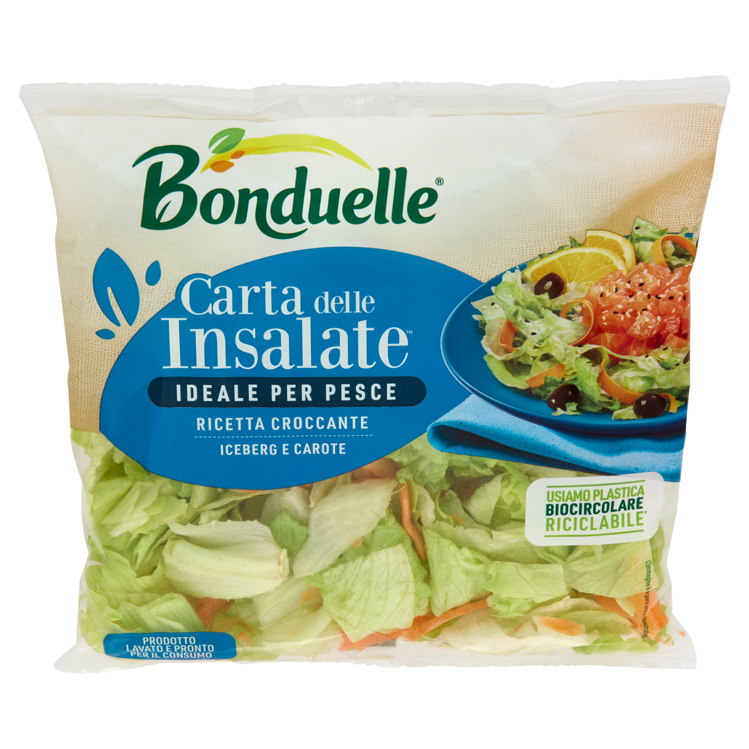 Il mondo che ci piace possiamo costruirlo ogni giorno insieme con semplici gesti: scelte sostenibili* e un'alimentazione ricca di prodotti a base vegetale, di qualità e gustosi. Come Carta Delle Insalate, mix di insalate e cruditè di qualità ideali da abbinare ad ogni tuo piatto. Perfetto per arricchire di gusto e trasformare ogni contorno in protagonista. *Scopri di più: inquadra il QR code o vai su www.bonduelle.it Bonduelle Italia è una B Corp: è parte di un movimento globale che si impegna in favore di un sistema economico inclusivo, equo e rigenerativo. usiamo Plastica Biocircolare* Le buste di questa gamma Bonduelle sono prodotte attraverso il processo innovativo Mass Balance, che utilizza fino al 30% di plastica da fonti rinnovabili come l'olio da cucina esausto. Questo ci permette di ridurre l'utilizzo di materiali di origine fossile limitando così l'impatto ambientale sul nostro pianeta.