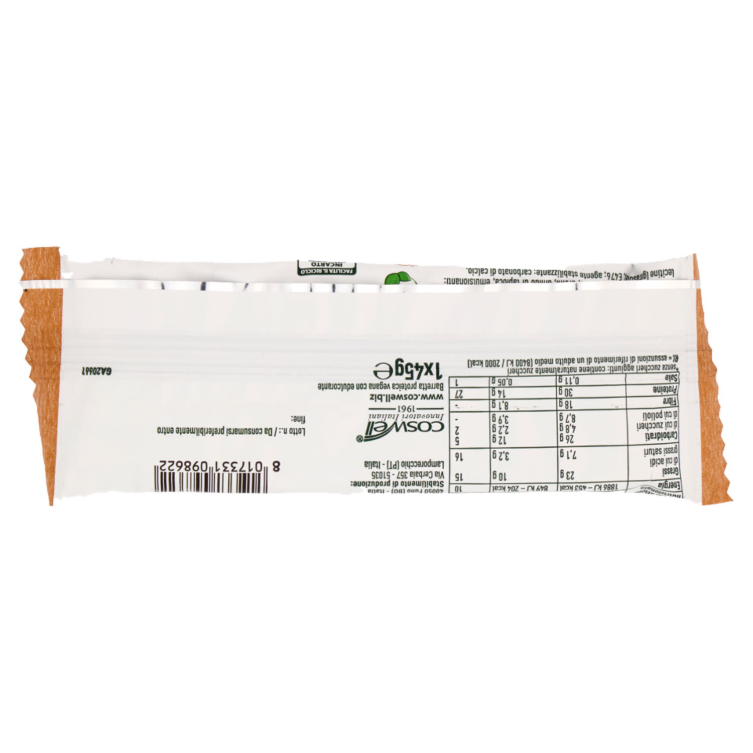 | Per 100 g | Per Barretta (45 g) | (%RI) per 45 g | |