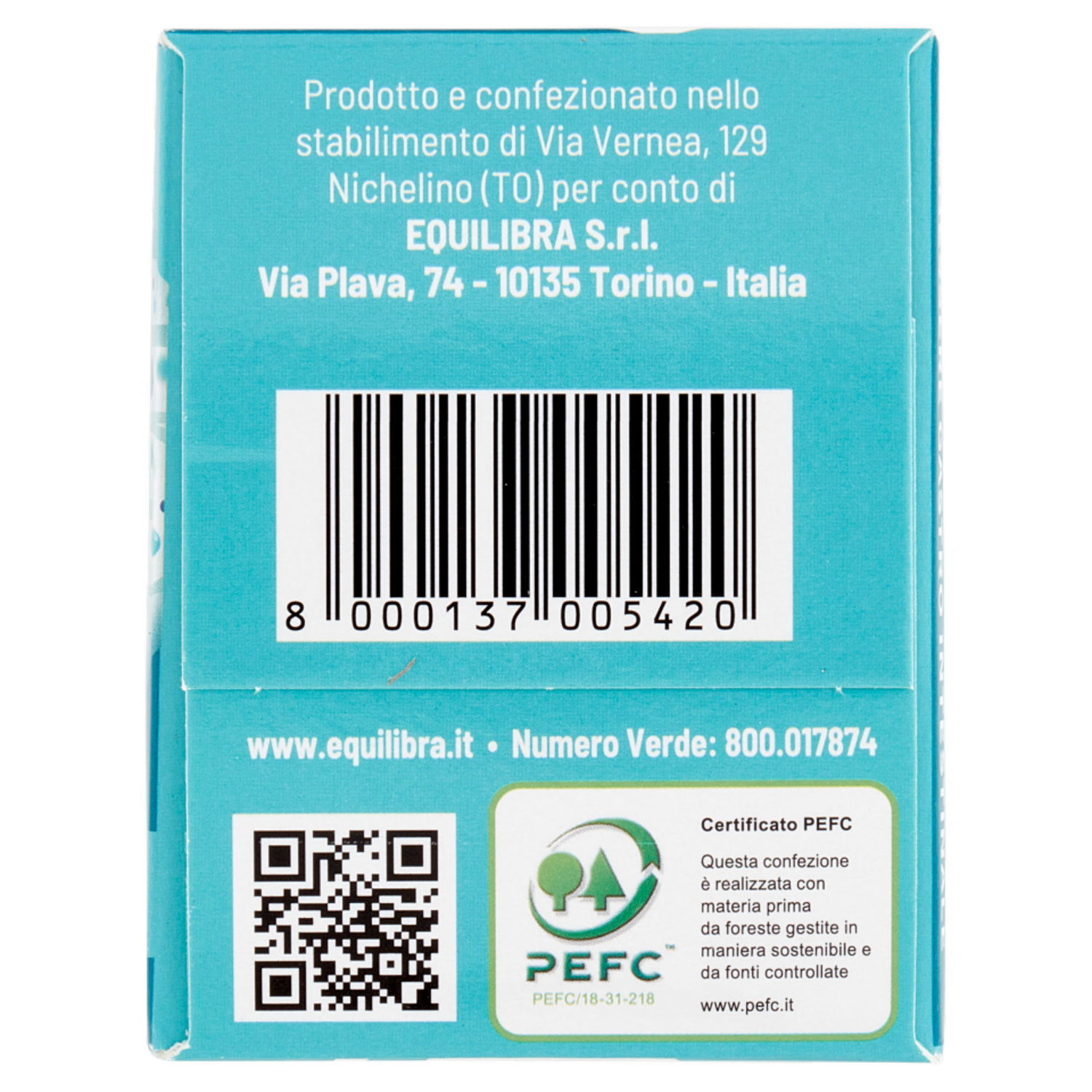 Prodotto e confezionato nello stabilimento di Via Vernea, 129 Nichelino (TO) per conto di Equilibra S.r.l. Via Plava, 74 10135 Torino Italia