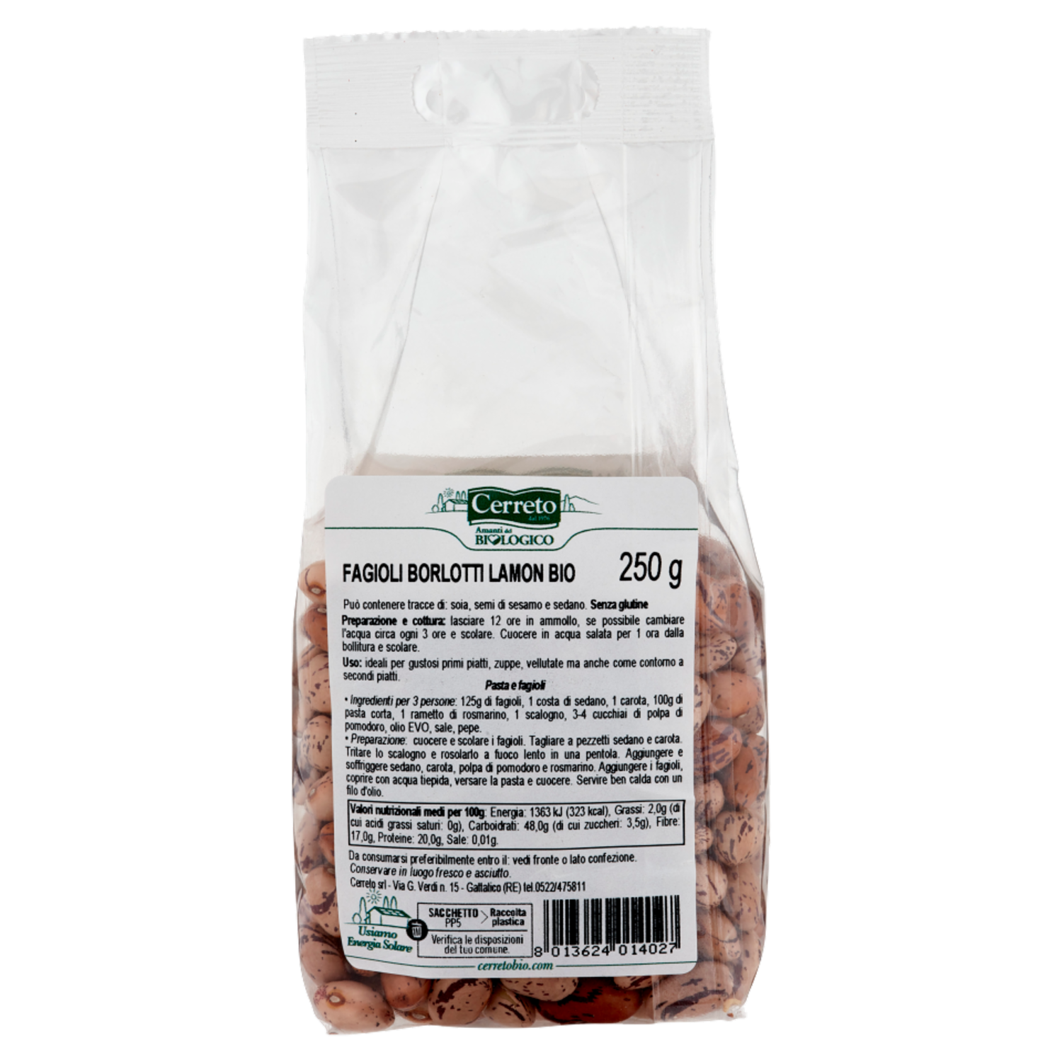Cerreto i Legumi Fagioli Borlotti Lamon Bio 250 g