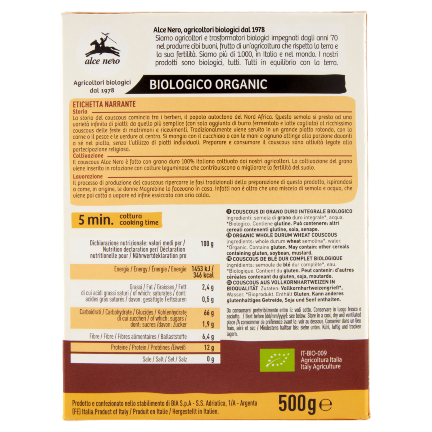 alce nero Couscous di Grano Duro Integrale 500 g