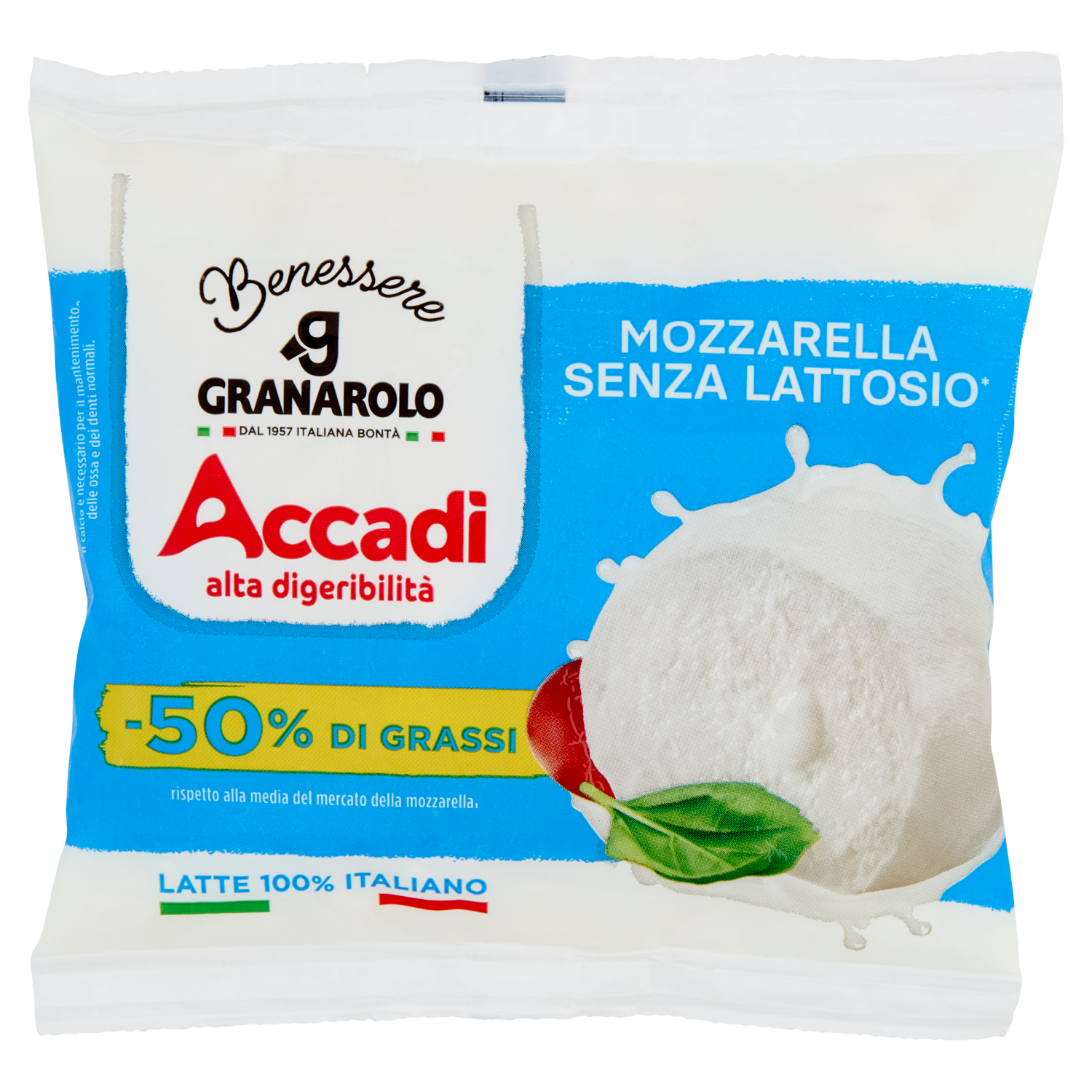 Granarolo Benessere Accadì Mozzarella Senza Lattosio* -50% di Grassi 100 g