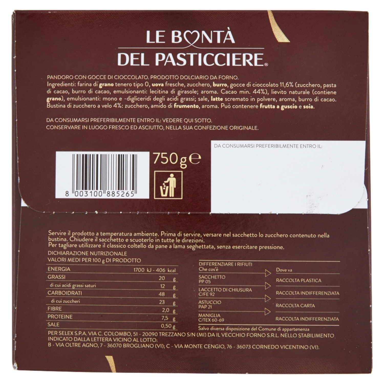 Le Bontà del Pasticciere Pandoro con Gocce Cioccolato 750 g