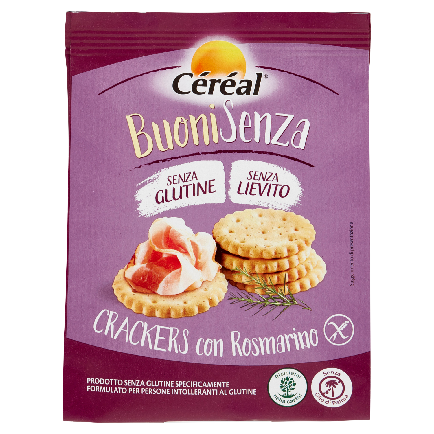 Céréal BuoniSenza Crackers con Rosmarino, Senza Glutine e Senza Lievito - 150 g