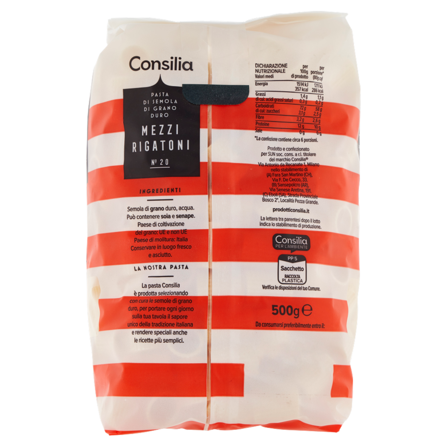 Consilia Pasta di Semola Trafilata al Bronzo Mezzi Rigatoni 500 g