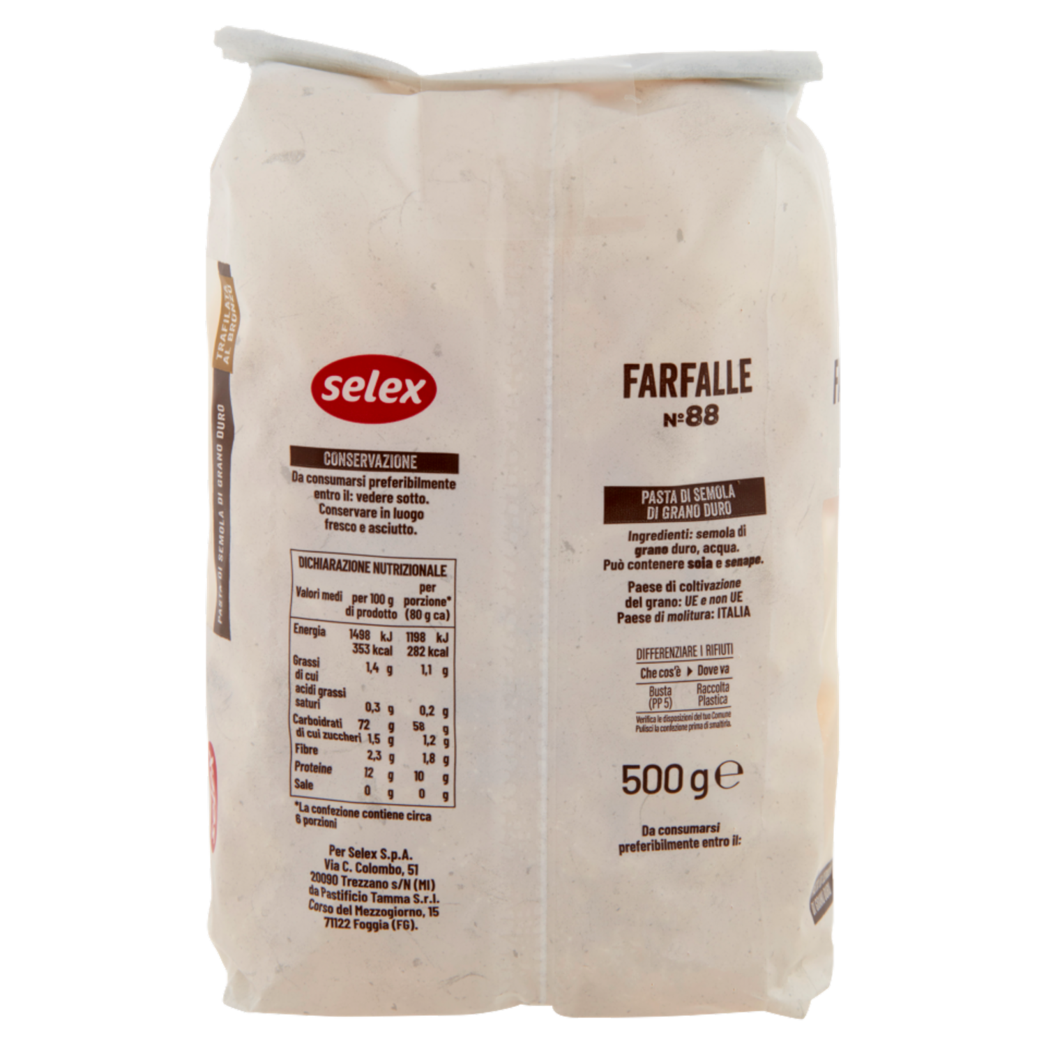 Selex Pasta di Semola Trafilata al Bronzo Farfalle 500 g