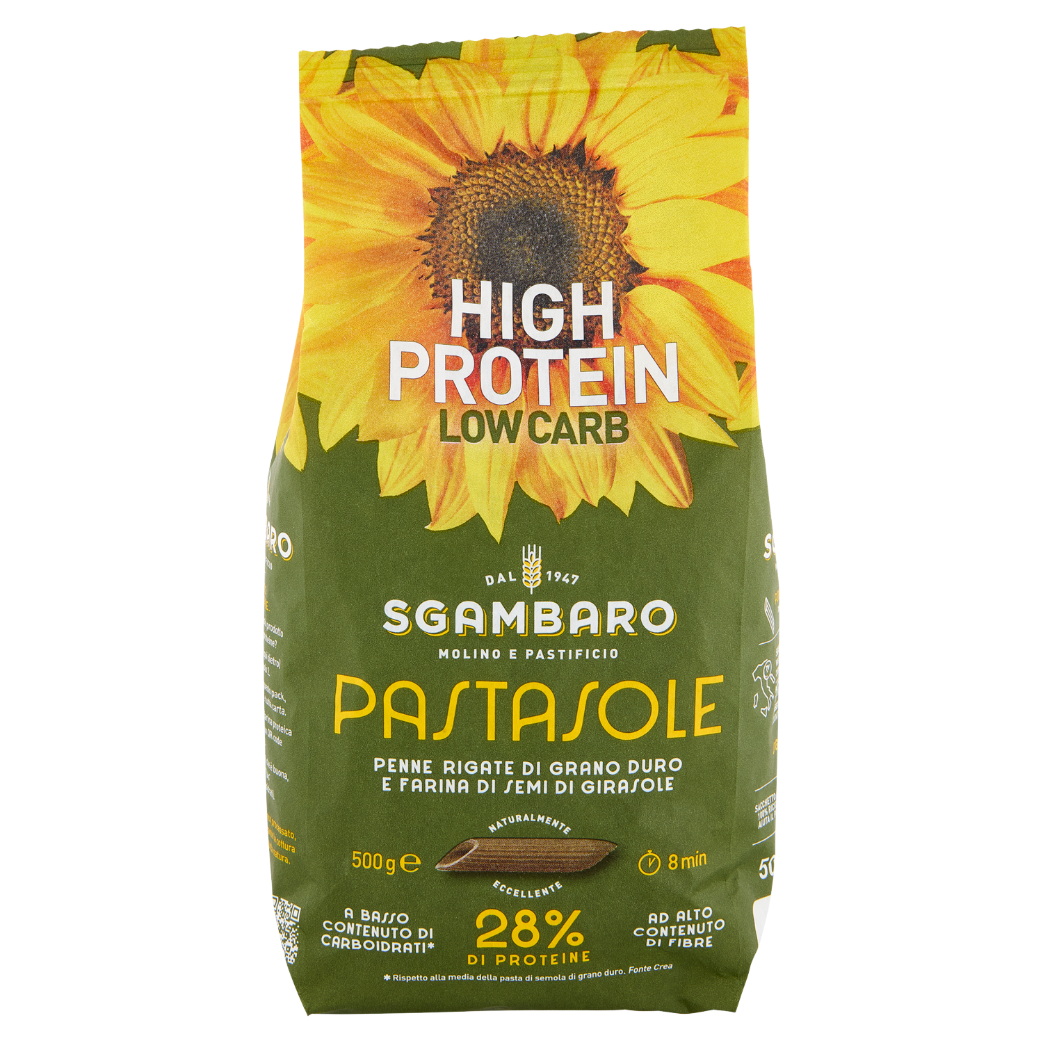 Sgambaro Pastasole Penne Rigate di Grano Duro e Farina di Semi di Girasole N°91 500 g