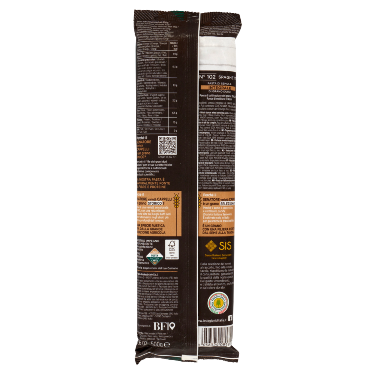 Le Stagioni d'Italia Senatore varietà Cappelli Integrale Spaghetti N° 102 500 g