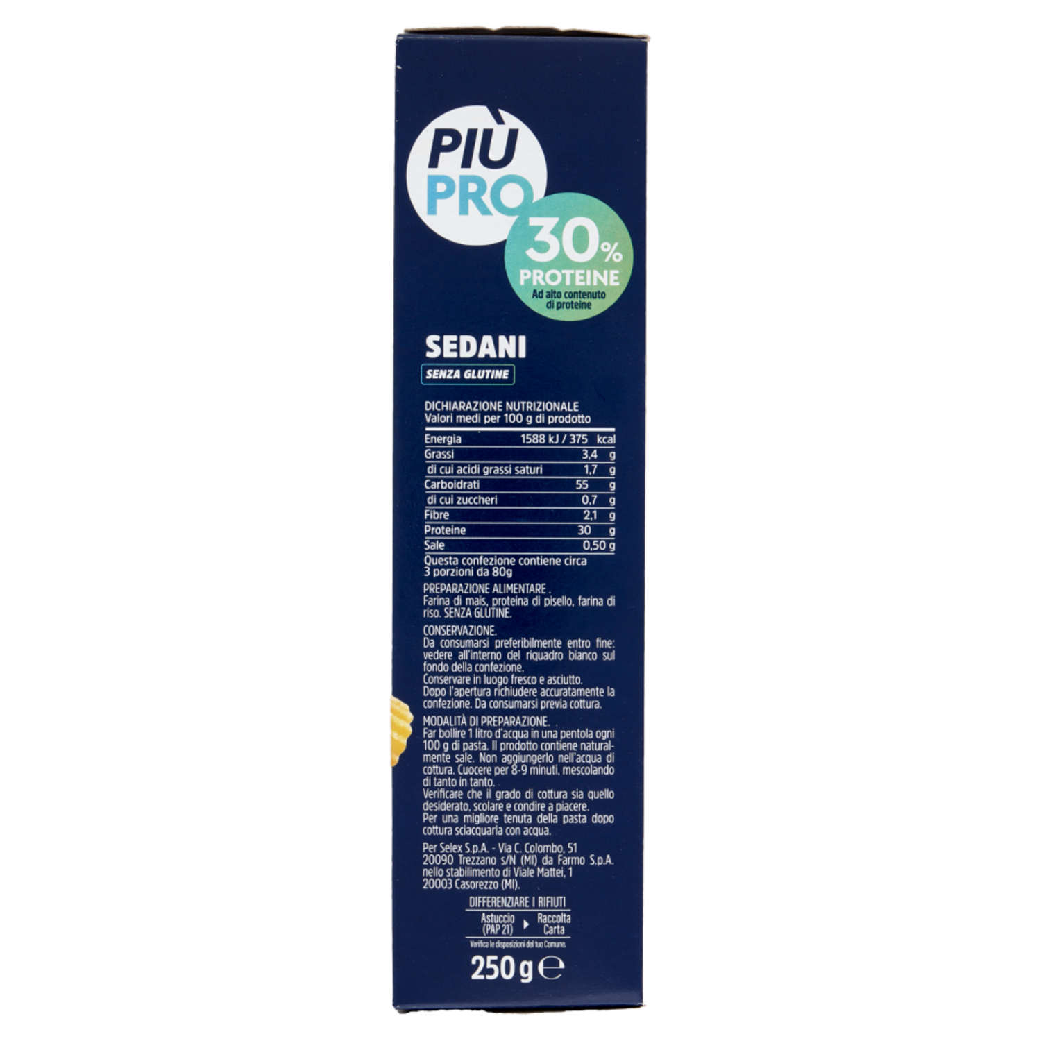 Piùpro Sedani Senza Glutine ad Alto Contenuto di Proteine 250 g