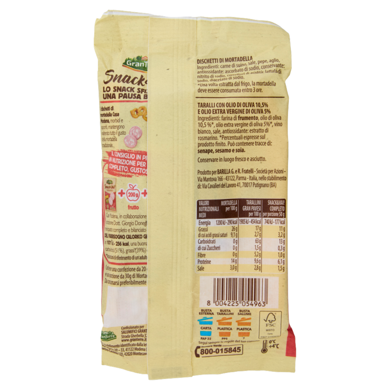 Casa Modena Snack & Vai! Dischetti di al Prosciutto Cotto e Tarallini Gran Pavesi 50 g