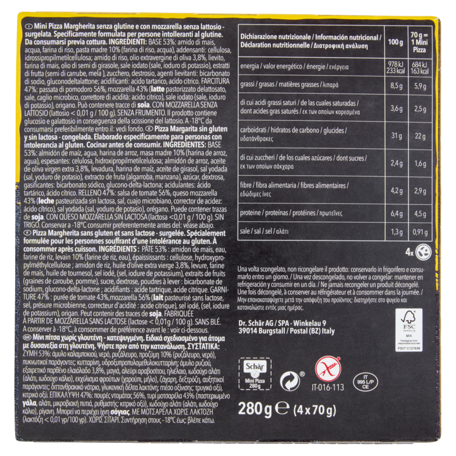 Schär Mini Pizza Margherita Lactose Free 4 x 70 g