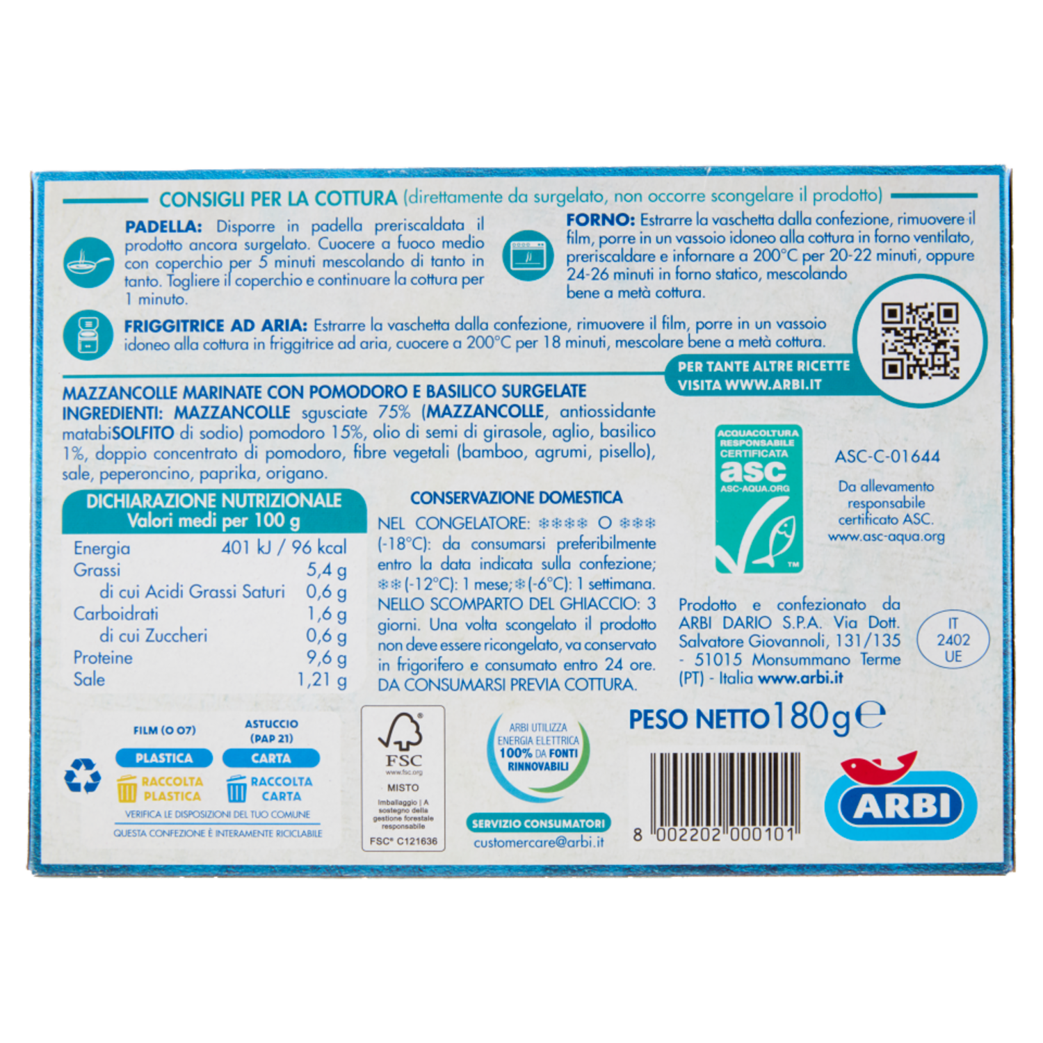 Arbi Mazzancolle pomodoro e basilico 180 g