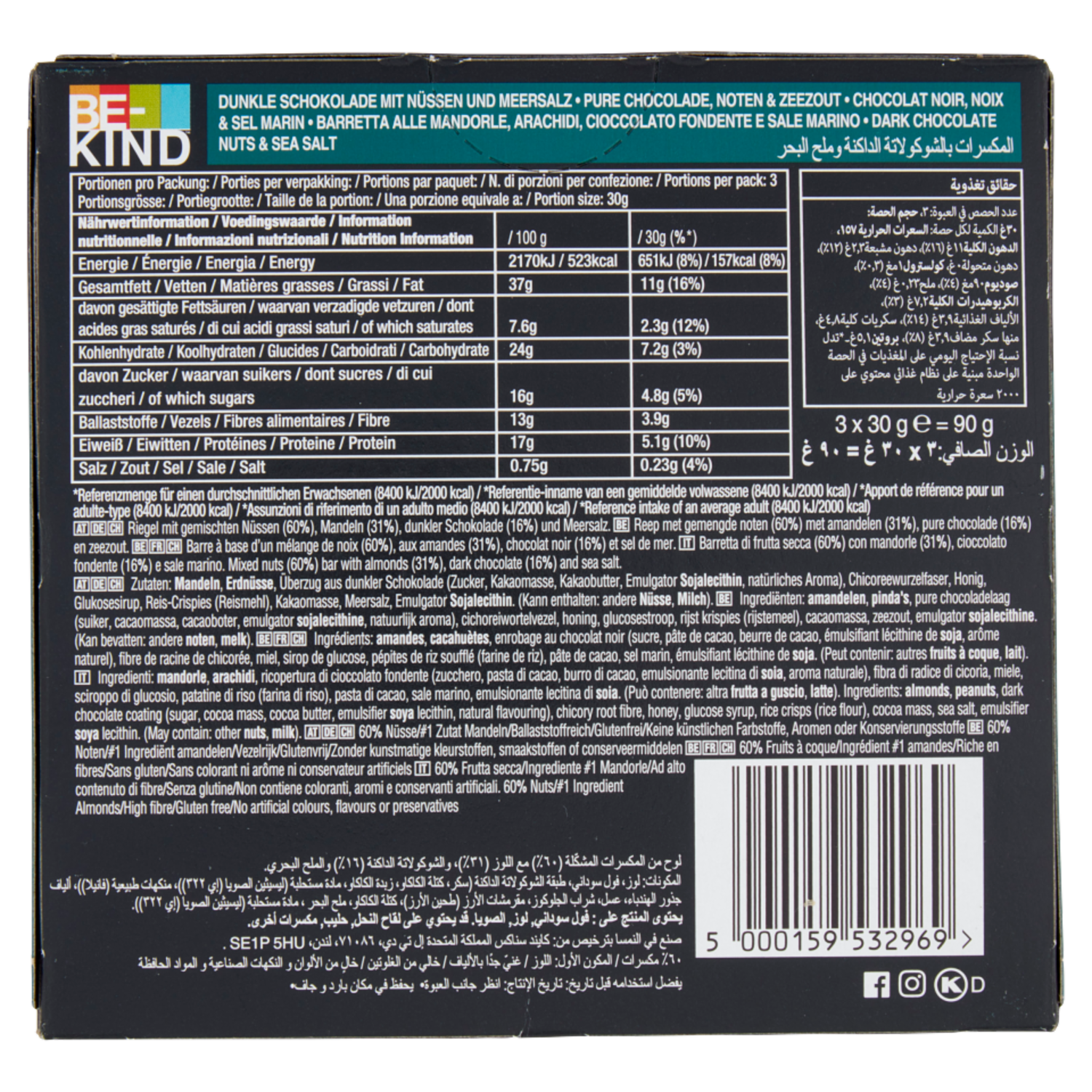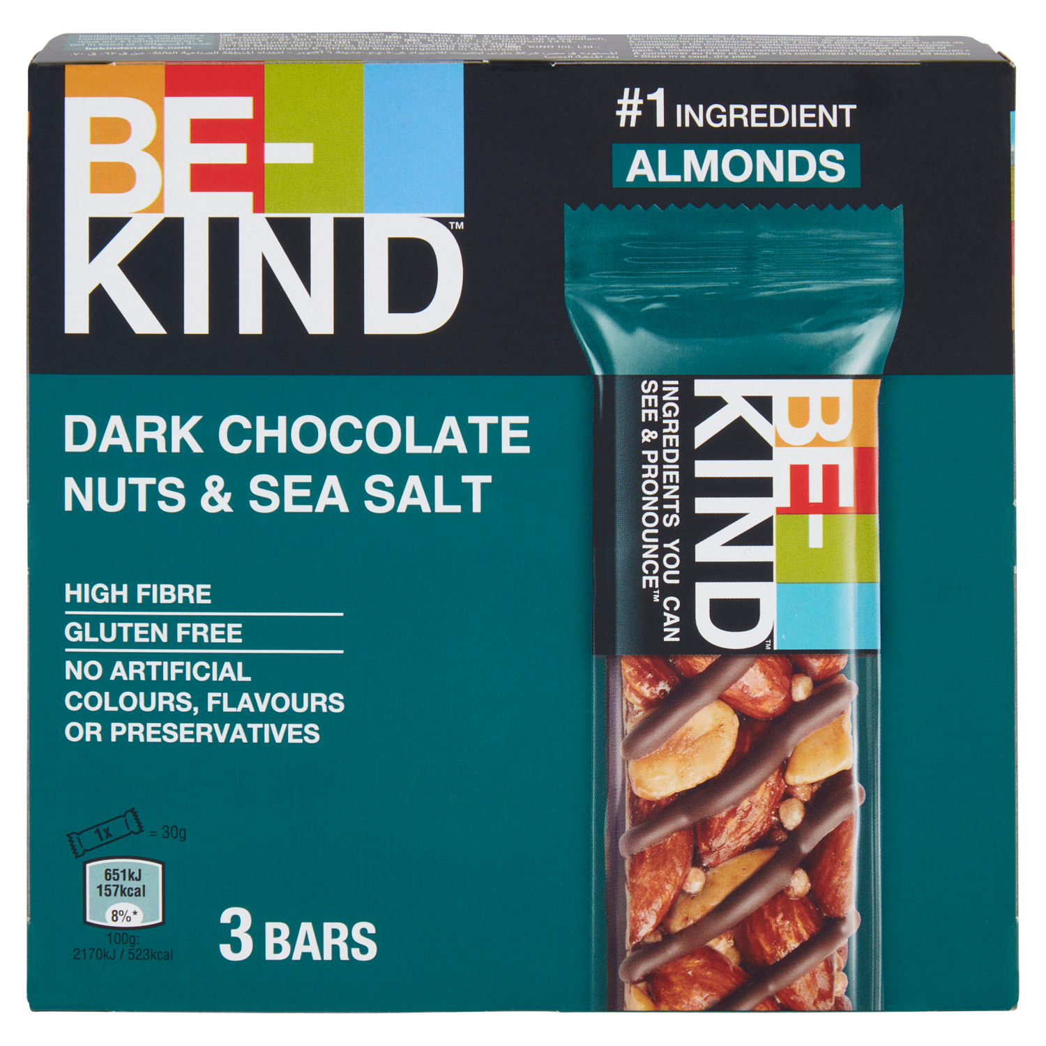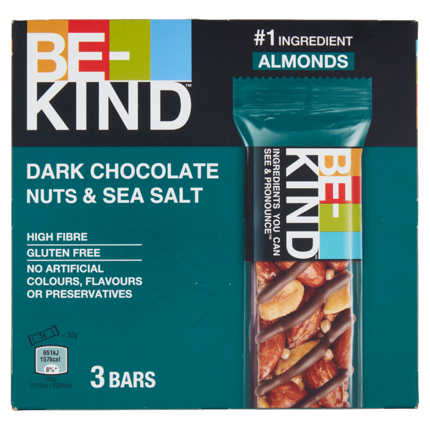 Be-Kind Barretta con Cioccolato Fondente e Sale Marino, 3 x 30 g