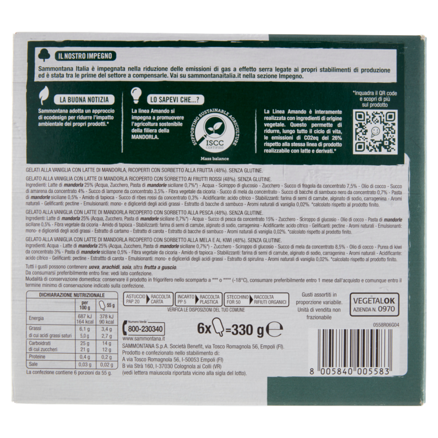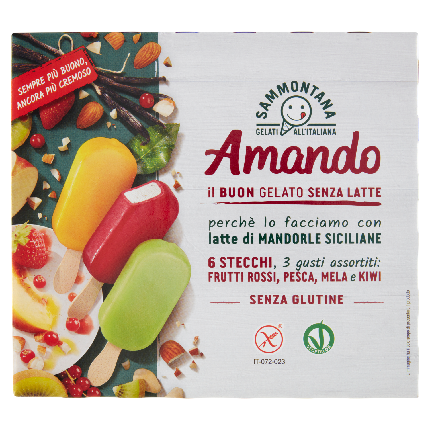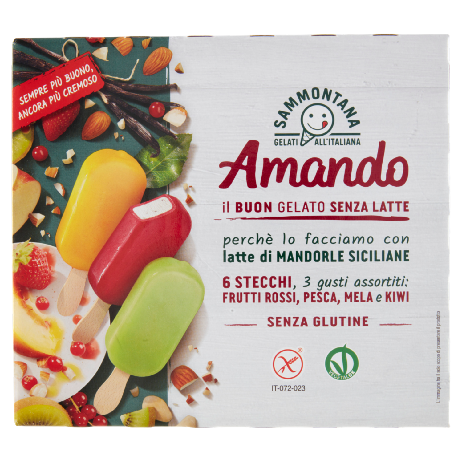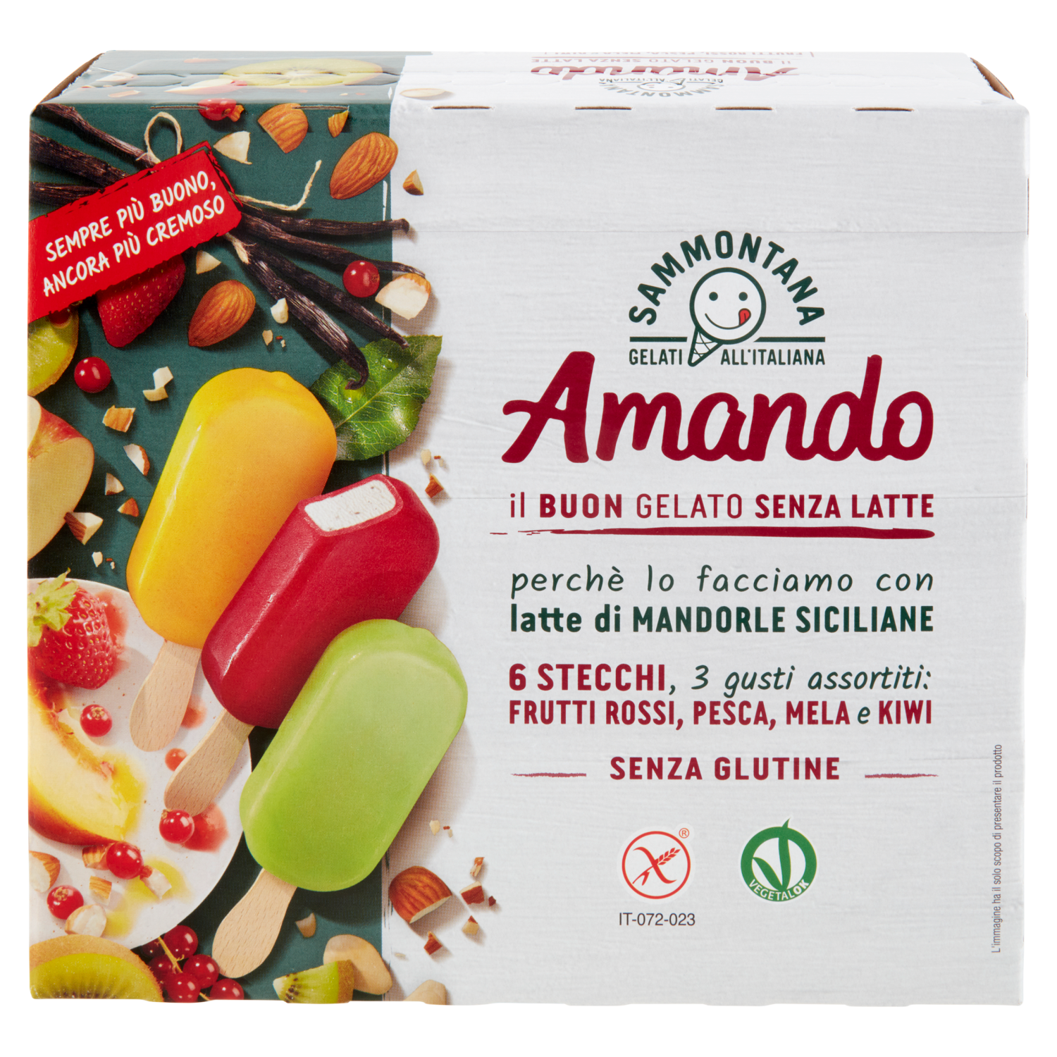 Sammontana Amando 6 Stecchi Frutti Rossi, Pesca, Mela e Kiwi 6 x 55 g