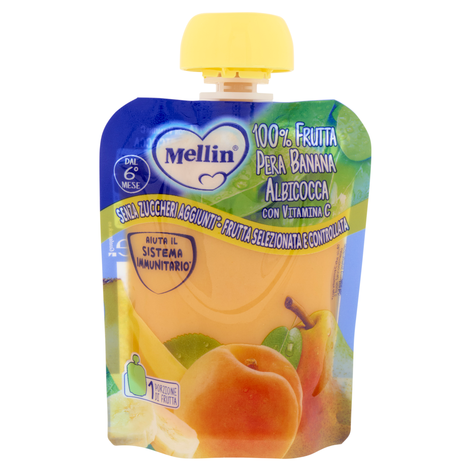 MELLIN Merenda di Frutta 100% con Vitamina C, Albicocca, a partire dal 6° mese, Pouch 90 g