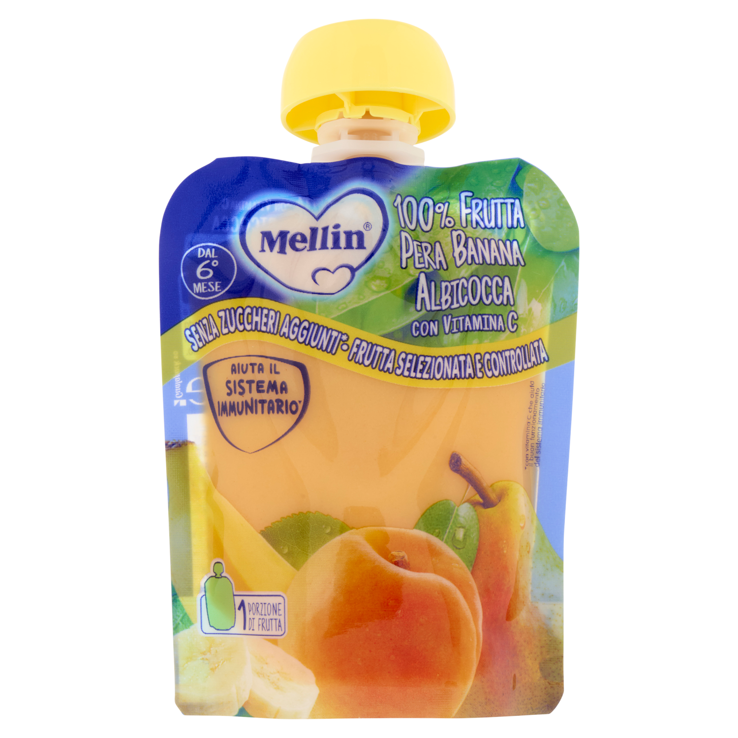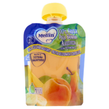 MELLIN Merenda di Frutta 100% con Vitamina C, Albicocca, a partire dal 6° mese, Pouch 90 g