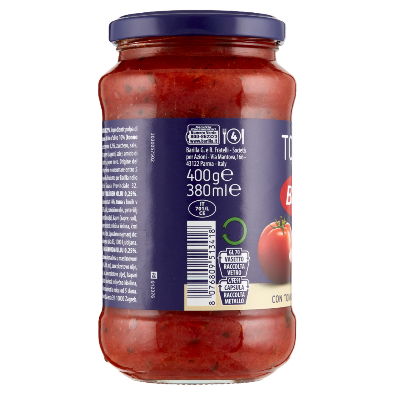 Barilla Sugo Tonno 100% Pomodoro Italiano Condimento per Pasta 400g