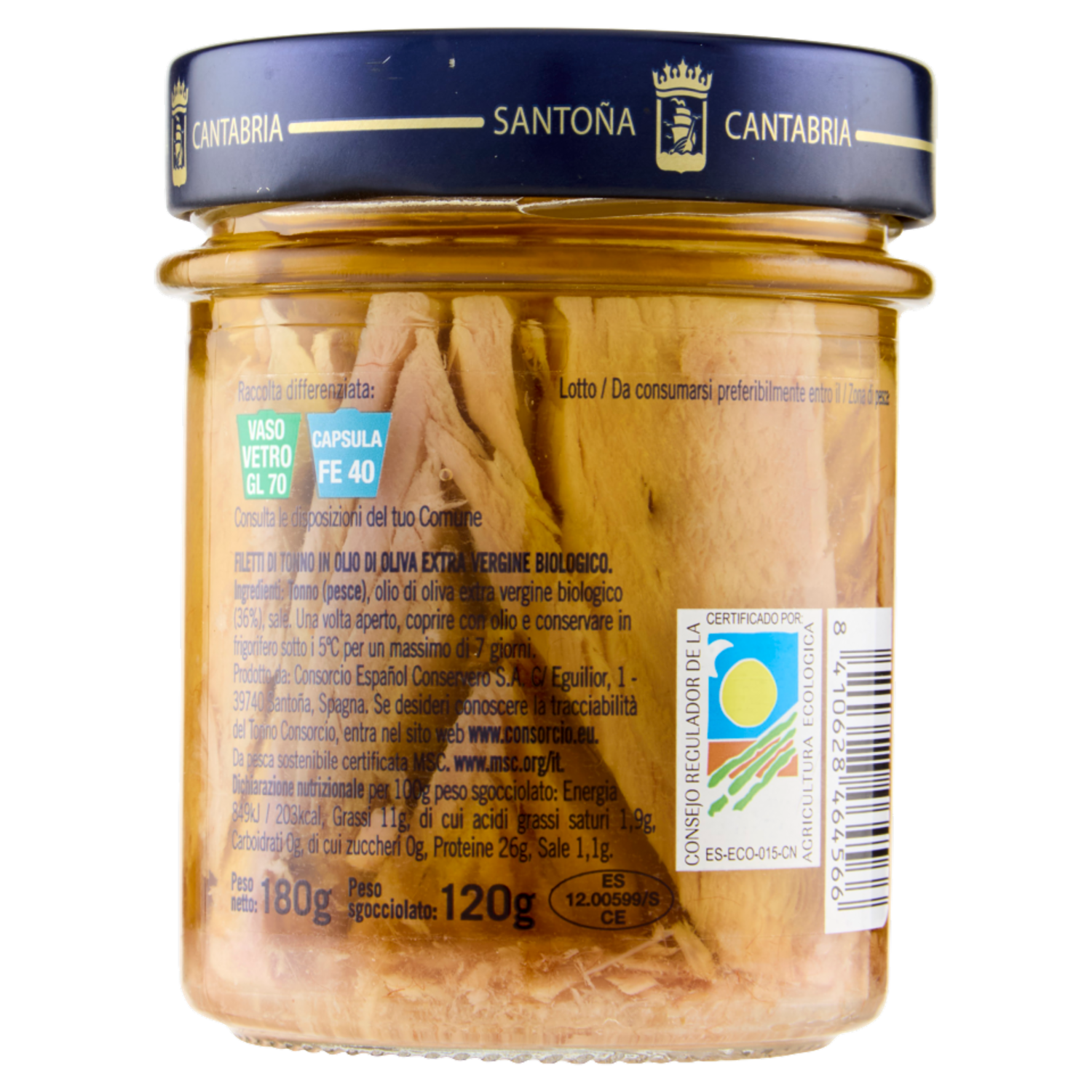 Consorcio Filetti di Tonno in Olio di Oliva Extra Vergine Bio 180 g