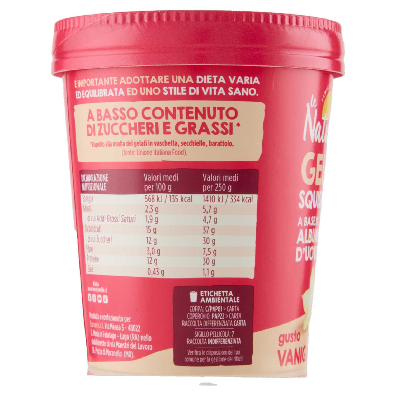 le Naturelle Gelato Squisito e Leggero* a Base di Albume d'Uovo gusto Vaniglia 250 g