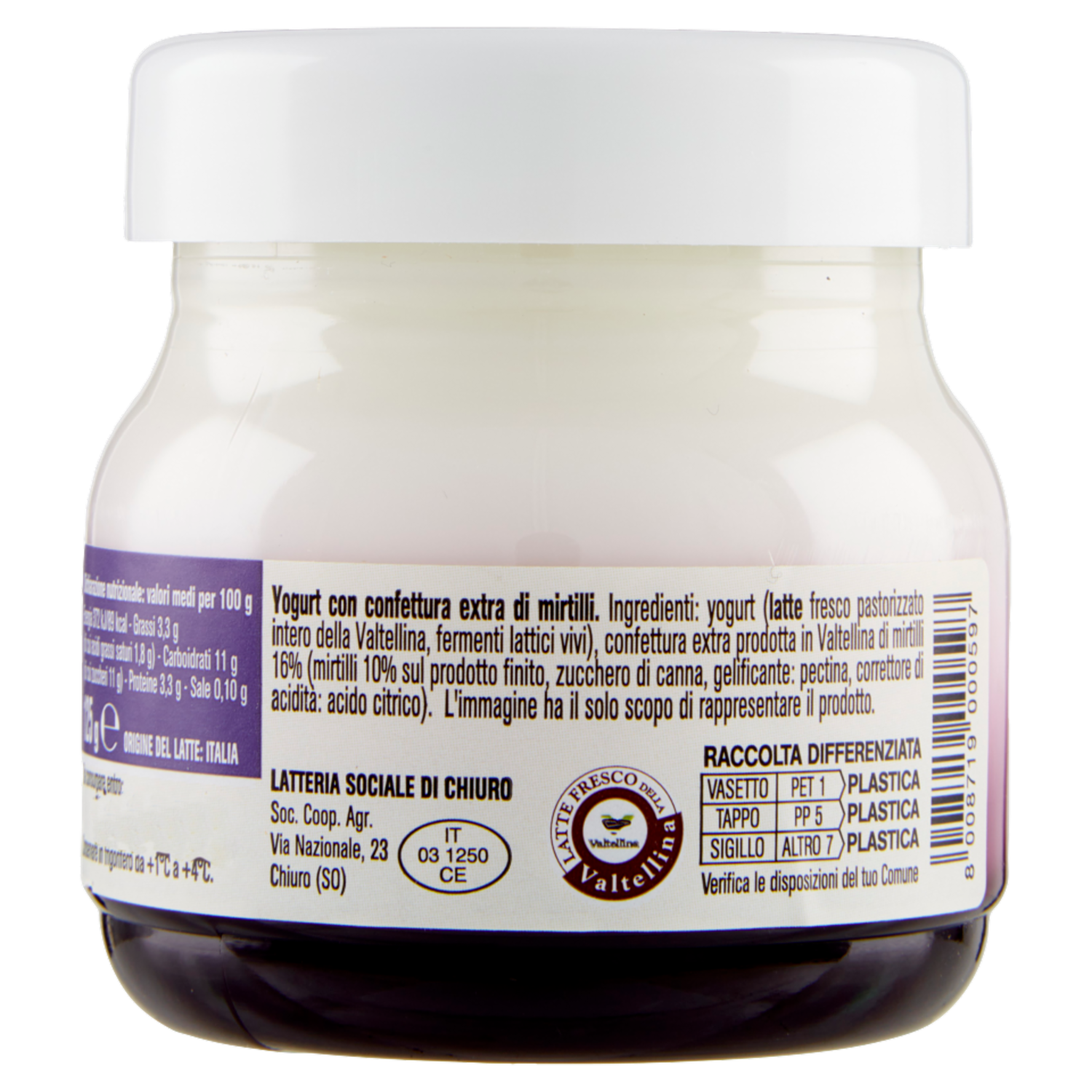 AlpiYò Yogurt di Valtellina Intero con confettura extra di Mirtillo 125 g
