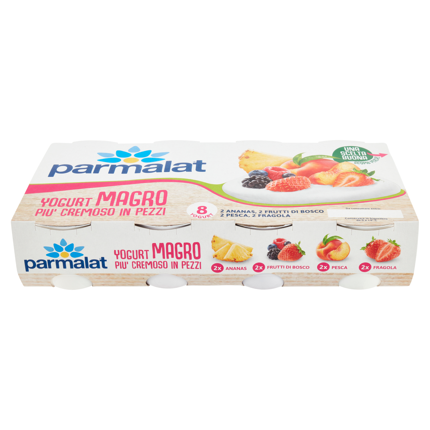 parmalat Yogurt Magro Più Cremoso in Pezzi 2 Ananas, 2 Frutti Bosco, 2 Pesca, 2 Fragola 8 x 125 g